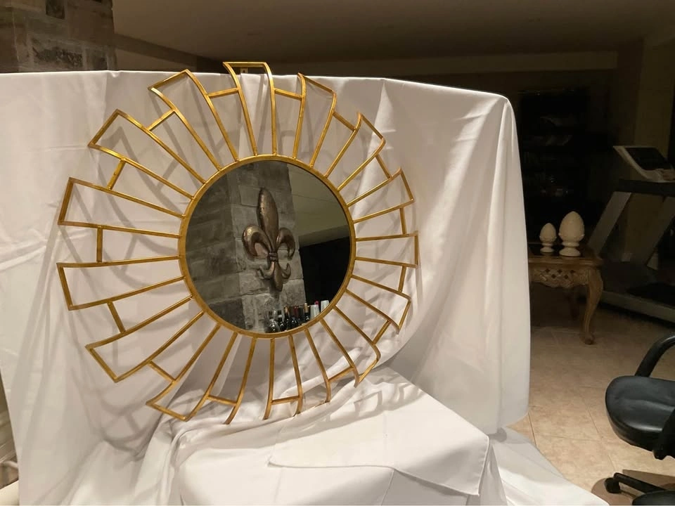 Gold Burst Mirror. Pristine Condition. Frame 31 " Mirror is 14 ". Smoke & Pet Free Home. #325/800. Cash Only - Richmond Hill ( Bathurst & King Rd ).