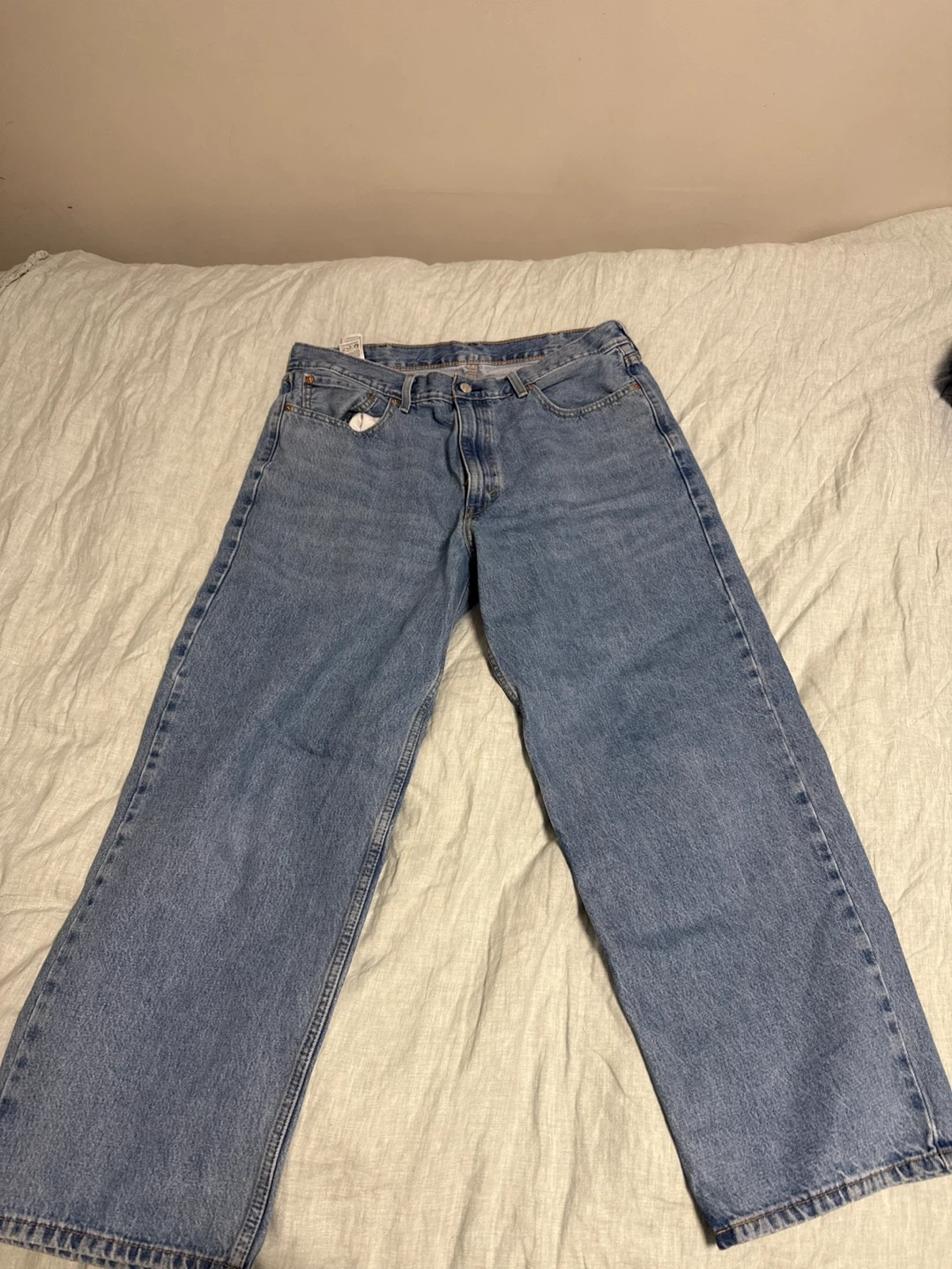 Classic Levi's 578 jeans in a blue wash. Waist is 38 inches and inseam is 32 inches. Made from durable denim. A timeless staple for any wardrobe!
