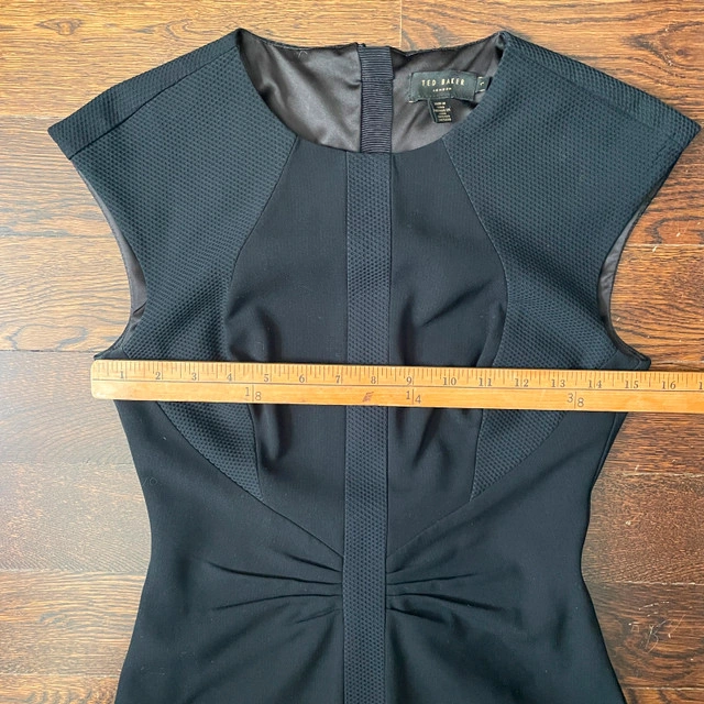Selling a Ted Baker Black Sheath Cocktail Dress Cap Sleeve-Size 4. Gorgeous Black fully lined dress with exposed back zipper. Measurements lying flat: Pit to pit: 15.5" Length: 35.5" Asking $100. Available for pick up in the Broadview/Danforth area. Contact-free porch pick up. Check out my other great stuff!