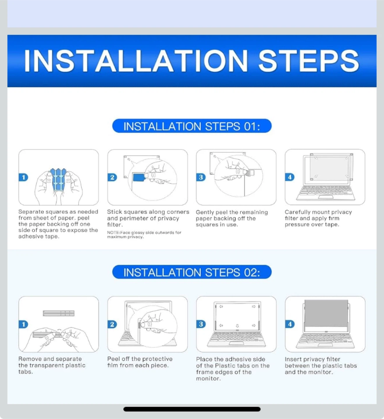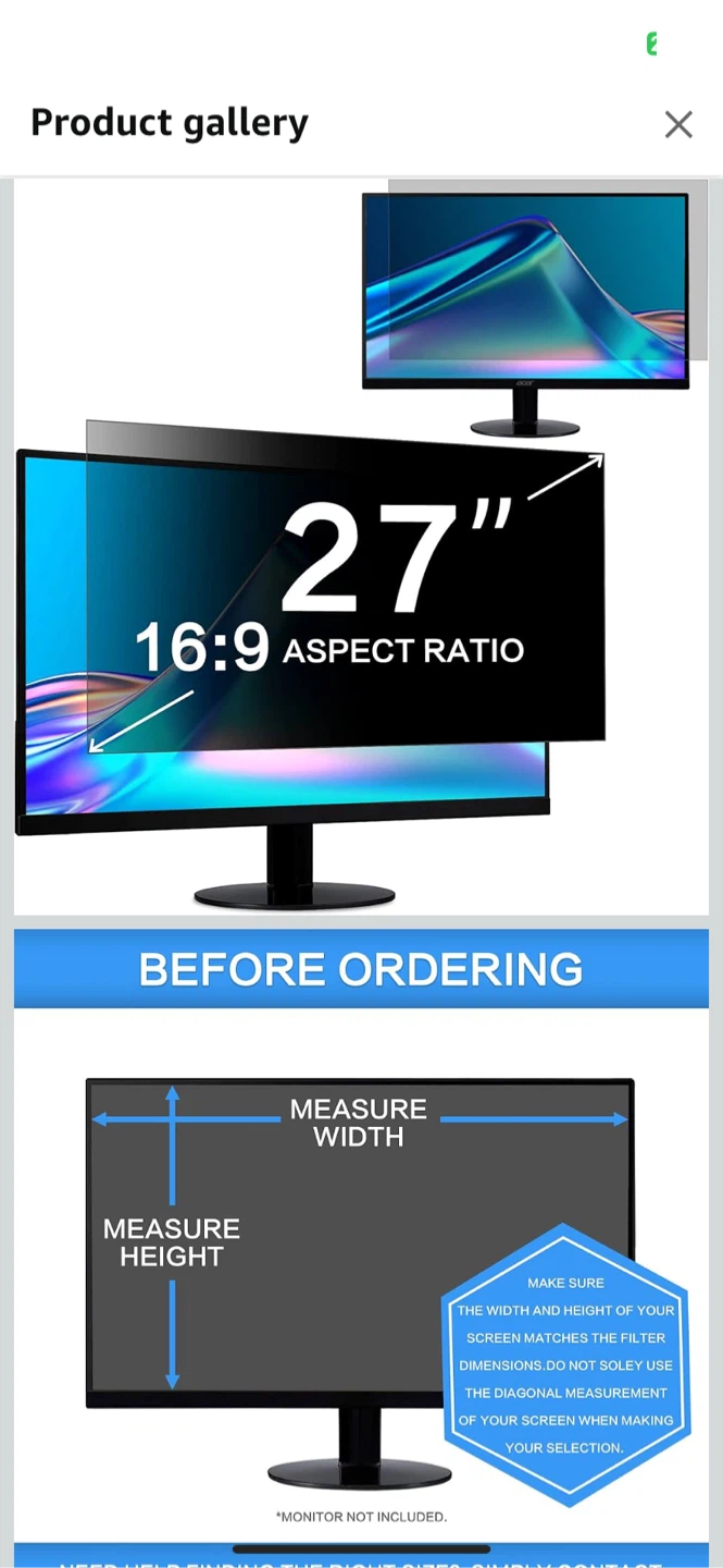 Selling a 27 inch (16:9) privacy screen for monitors. It's in great condition and ready to use! This screen helps keep your work private and reduces glare. Easy to install with included instructions