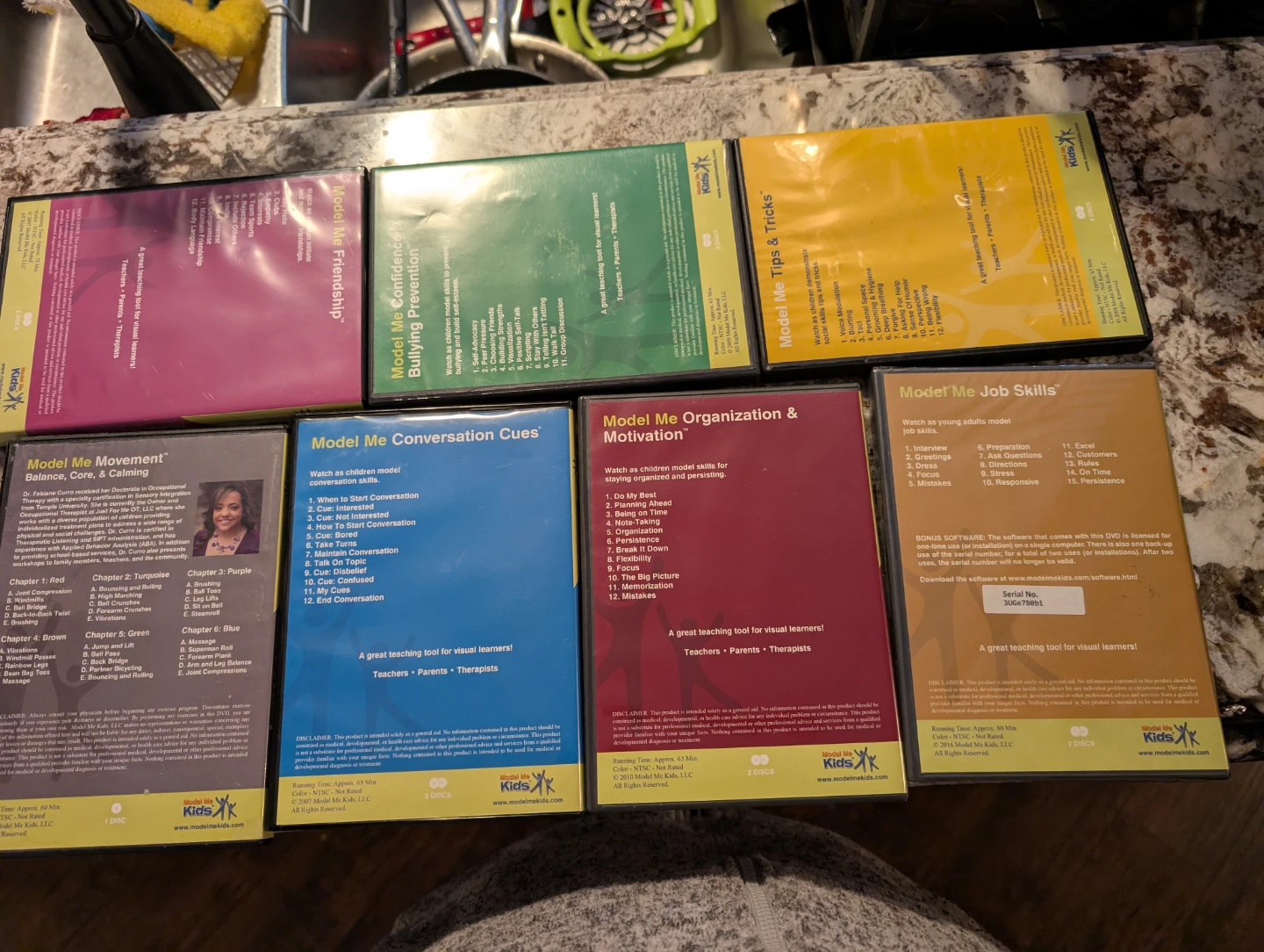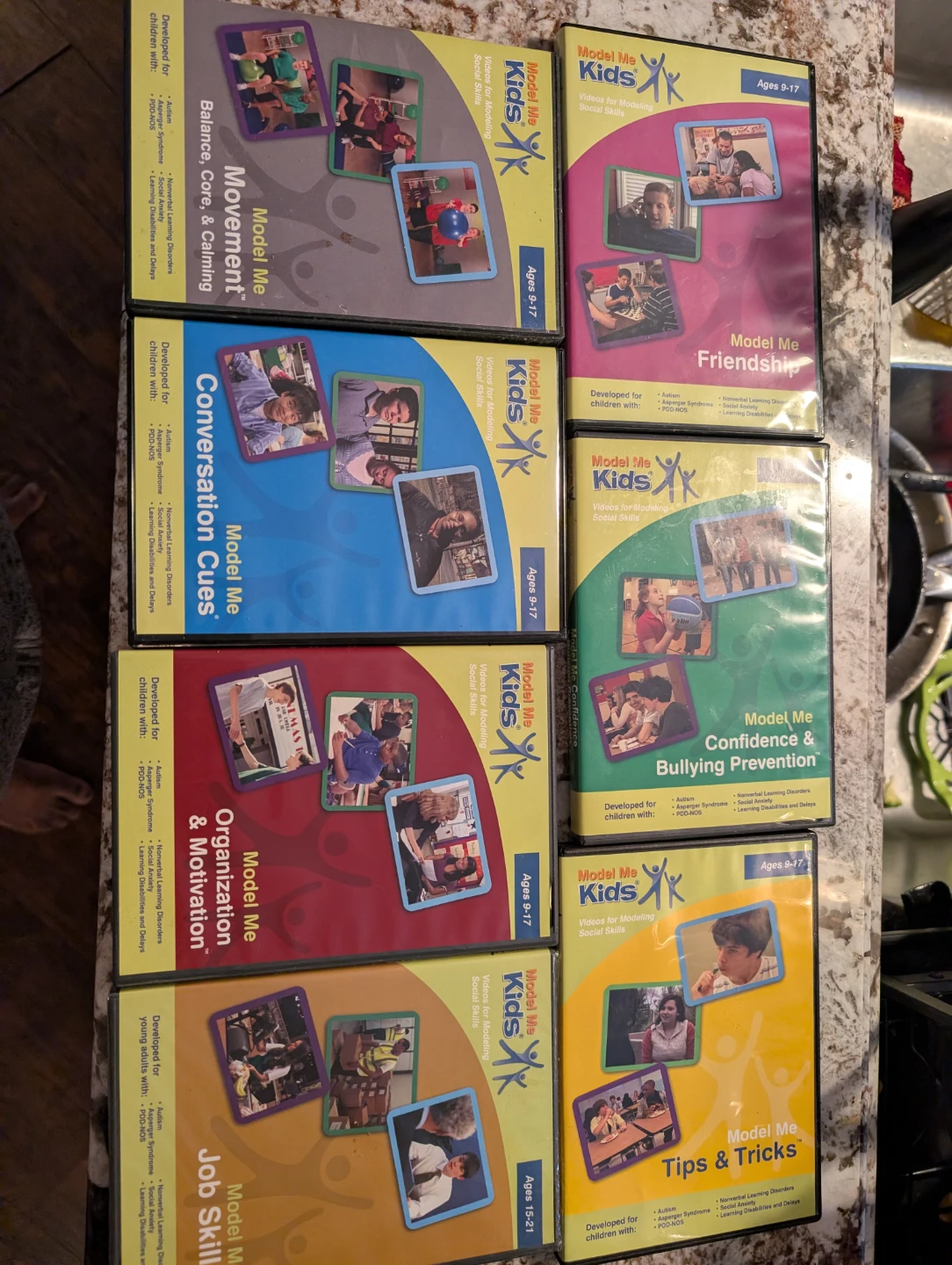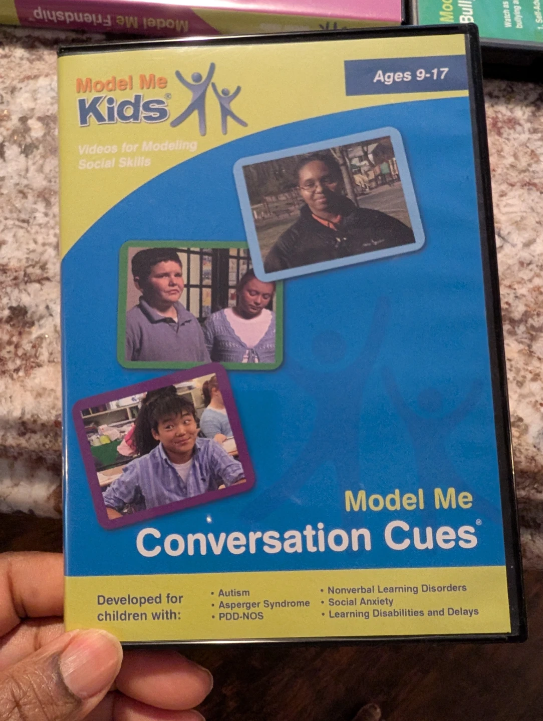 Selling a set of Model Me Kids DVDs. These videos are designed for modelling social skills and are suitable for children aged 9-17. The DVDs cover topics such as: