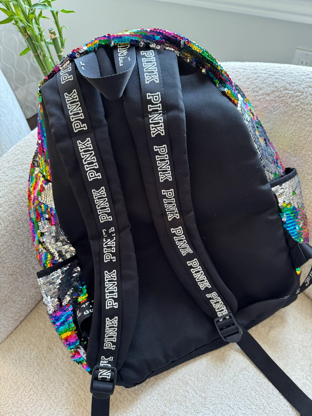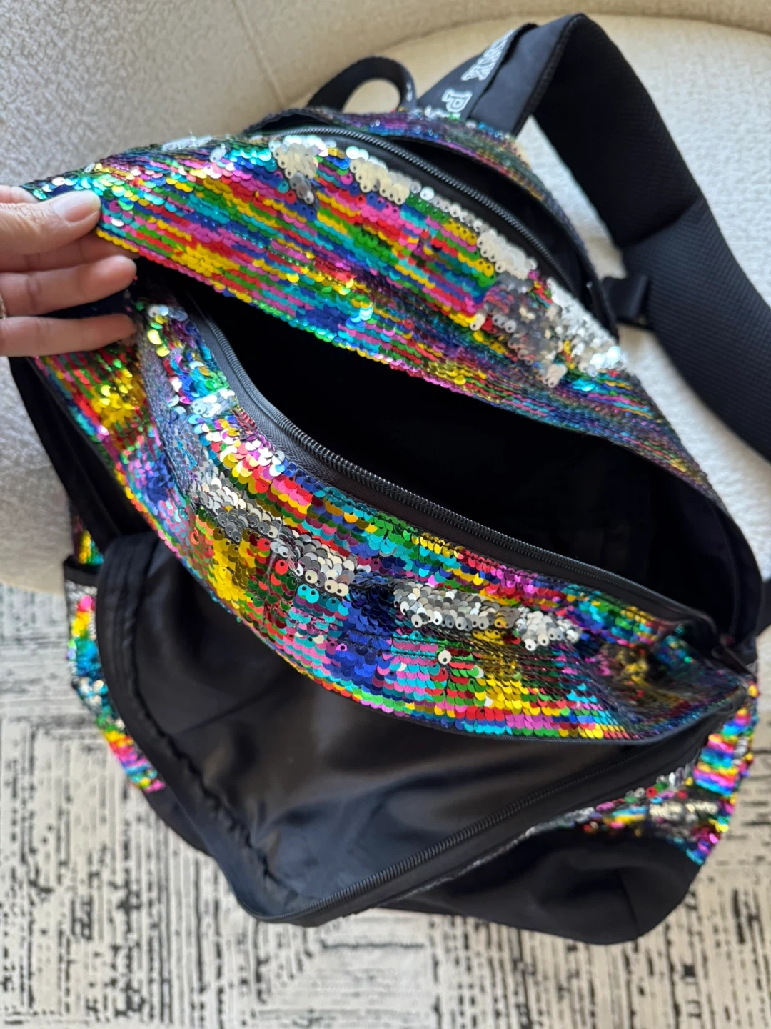 PINK Backpack Sequin Rainbow Iridescent