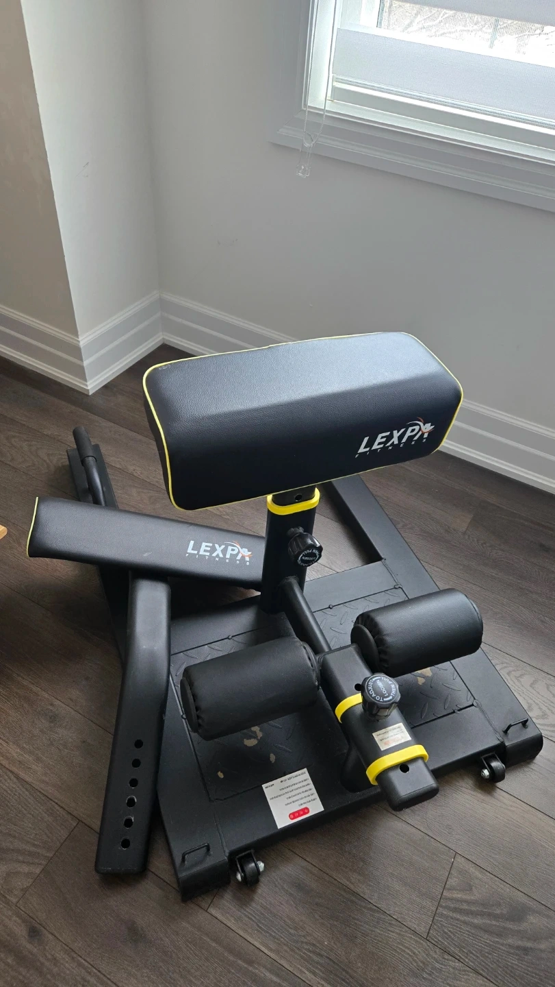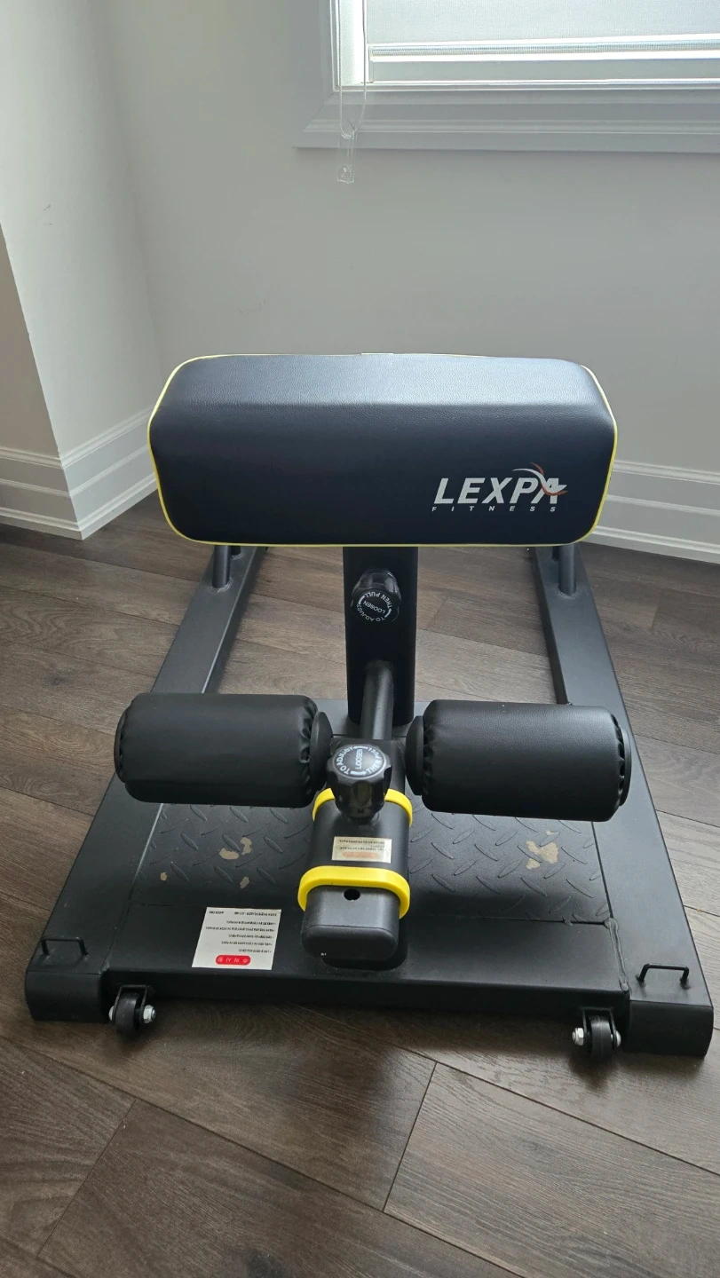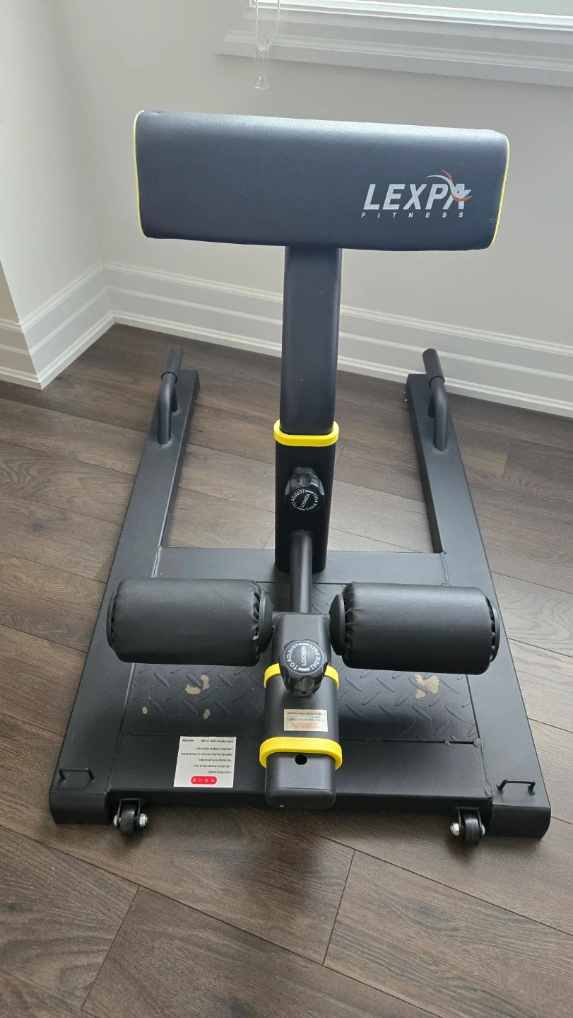 LEXPA FITNESS squat assist trainer. Durable black and yellow design. Helps with proper squat form and provides support. Adjustments available for personalized workouts.