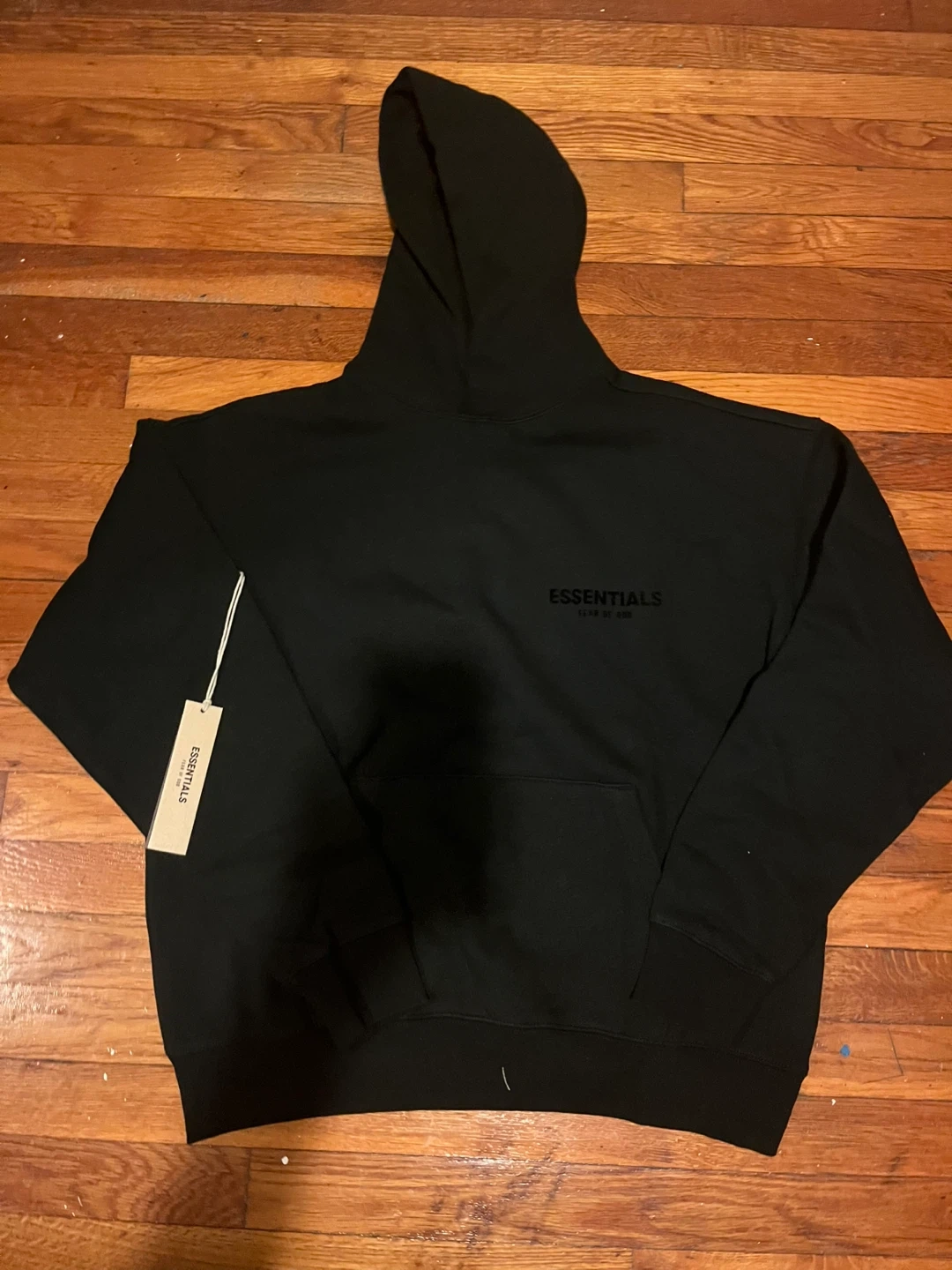 Selling a black hoodie from Essentials Fear of God! It's in great condition and ready for a new home. The hoodie features the Essentials logo on the front. Comes with the original packaging and