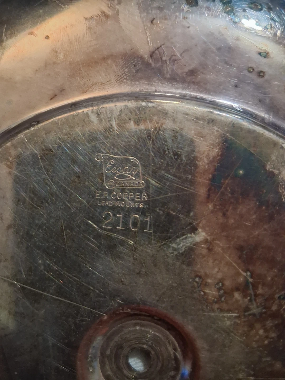 Selling a vintage Esay Canada E.P. Copper plate with lead mounts. It has a beautiful, intricate design around the edges and in the center. A lovely piece for display or use!