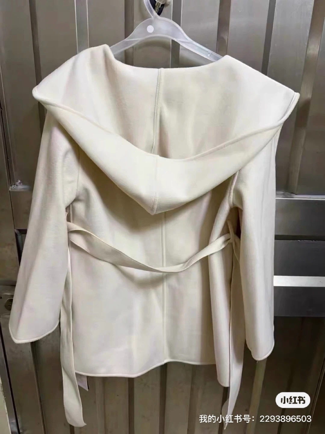 Women's Cream Hooded Wool Blend Wrap Coat
