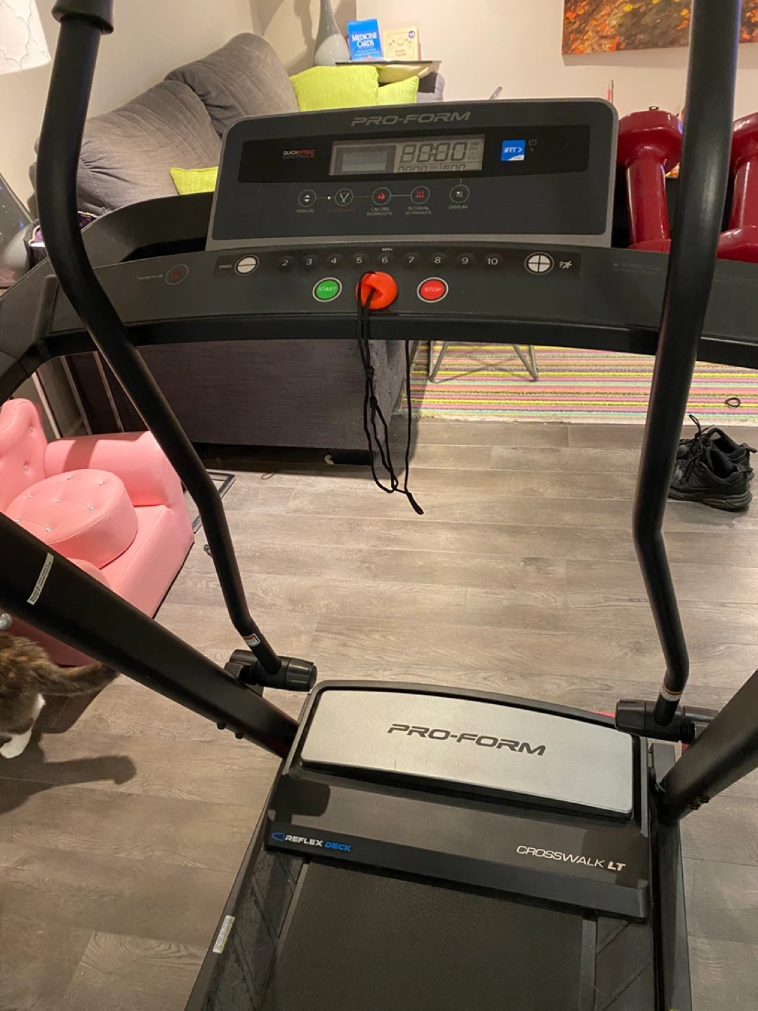 This ProForm Crosswalk LT treadmill is great for home workouts. It features a Reflex Deck for cushioning and has adjustable resistance. It's designed for walking and jogging.