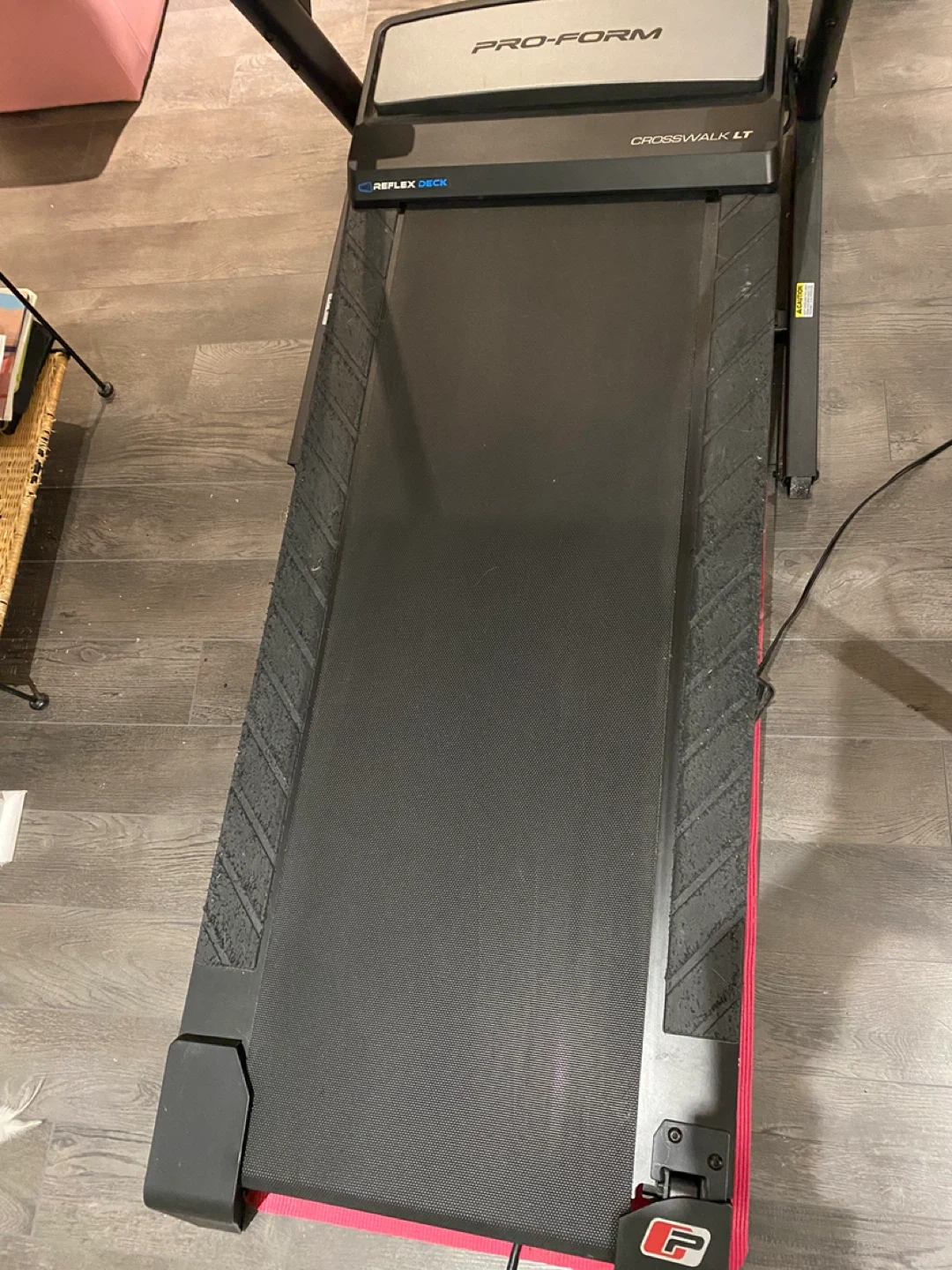 This ProForm Crosswalk LT treadmill is great for home workouts. It features a Reflex Deck for cushioning and has adjustable resistance. It's designed for walking and jogging.