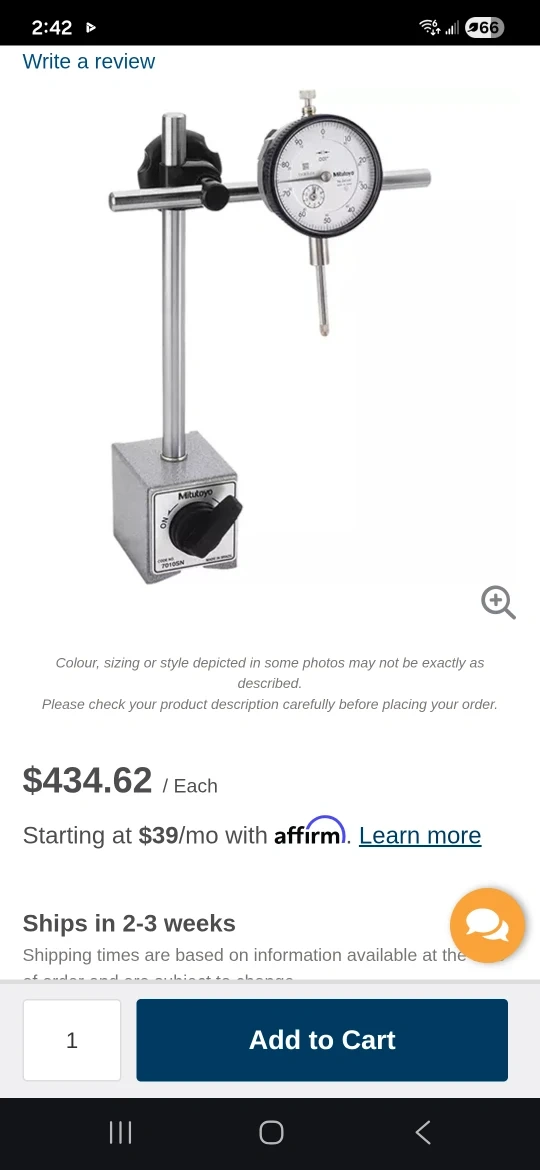 Selling a Mitutoyo dial indicator set. It comes with its original case for safe storage. The set is in good condition and ready to use for precise measurements. Originally priced at $434.62.