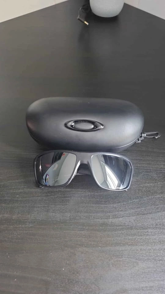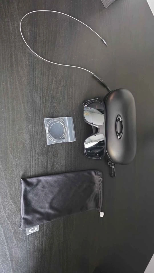 Almost brand new Polarized Oakley sunglasses. Comes with case and neck accessory. Great for using while riding motorcycles because of the shape of the glasses.