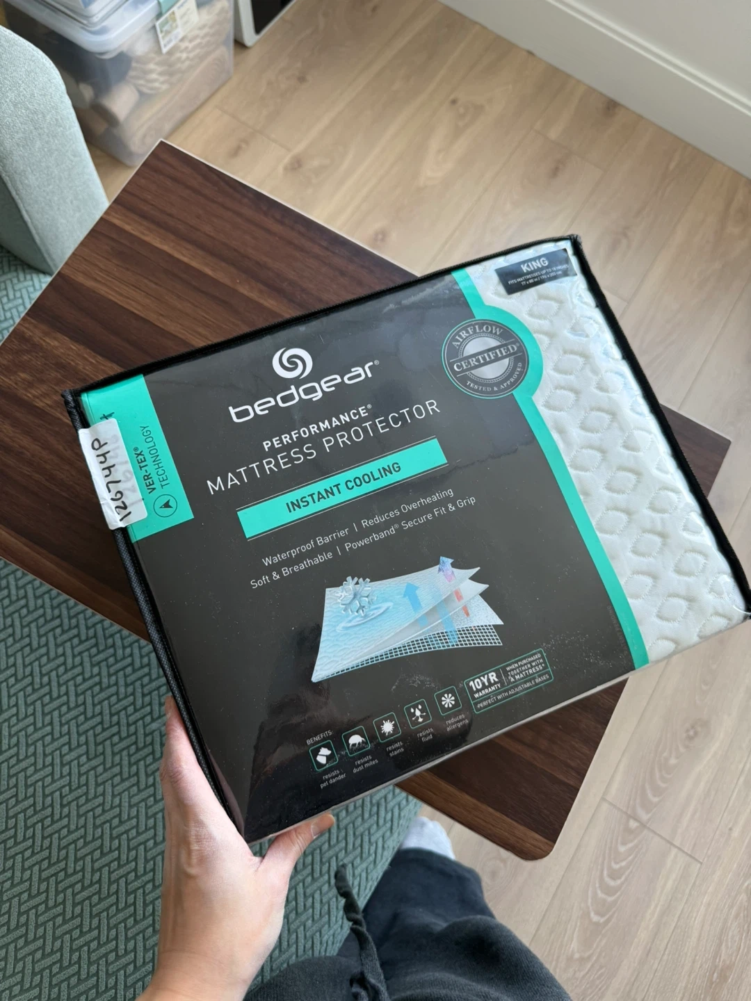This Bedgear Performance mattress protector offers instant cooling. It features a waterproof barrier and reduces overheating. It's soft, breathable, and has a secure Powerband fit. Resists pet dander, dust mites, stains, fluid, and allergens.
