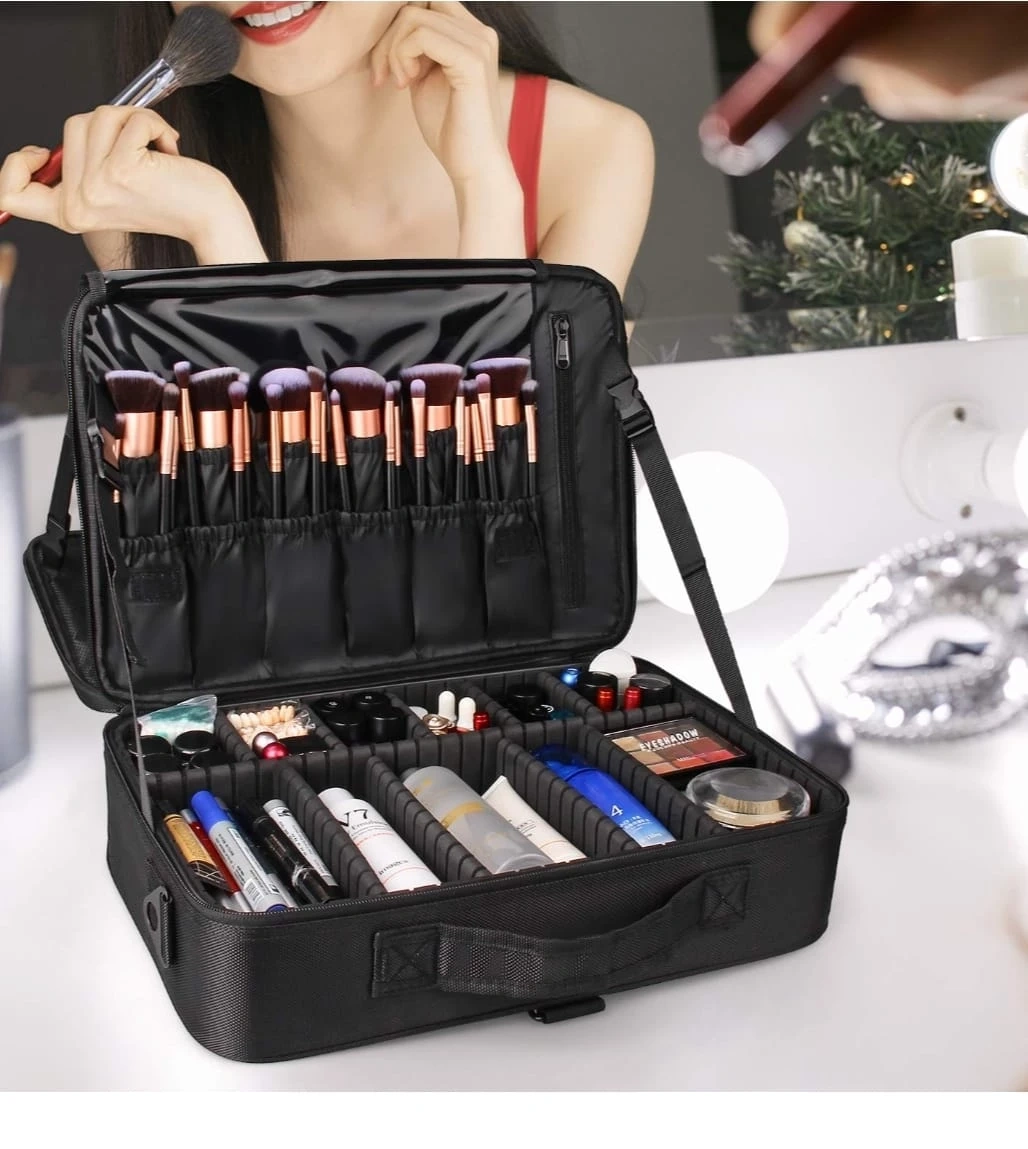 It's also designed to be portable, with options to carry it by hand, over the shoulder, or attach it to a rolling suitcase. Great for travel or keeping your makeup organized at home