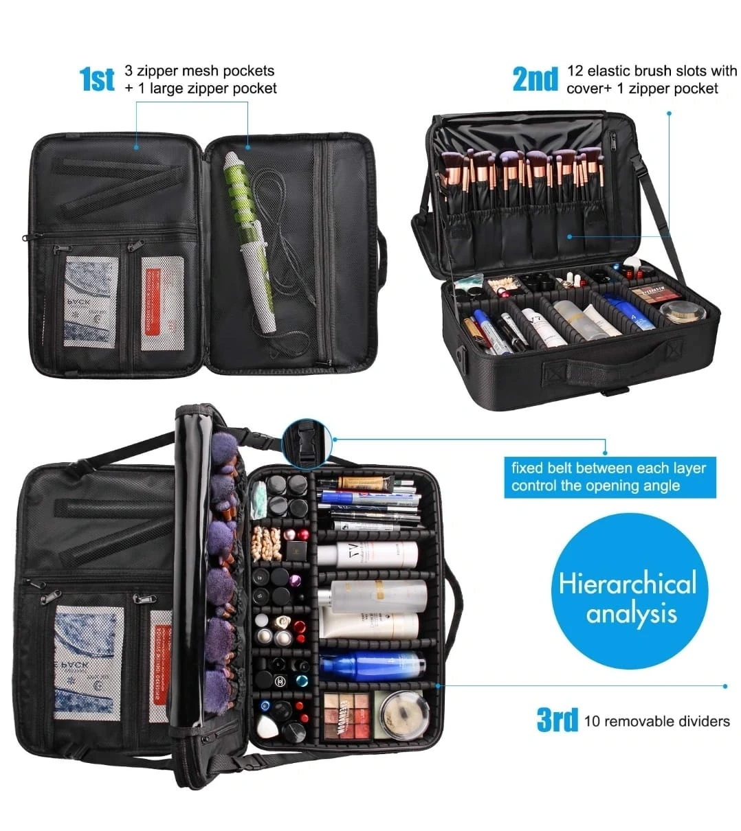 This Reisover makeup train case is perfect for organizing all your cosmetics and beauty tools! It features: