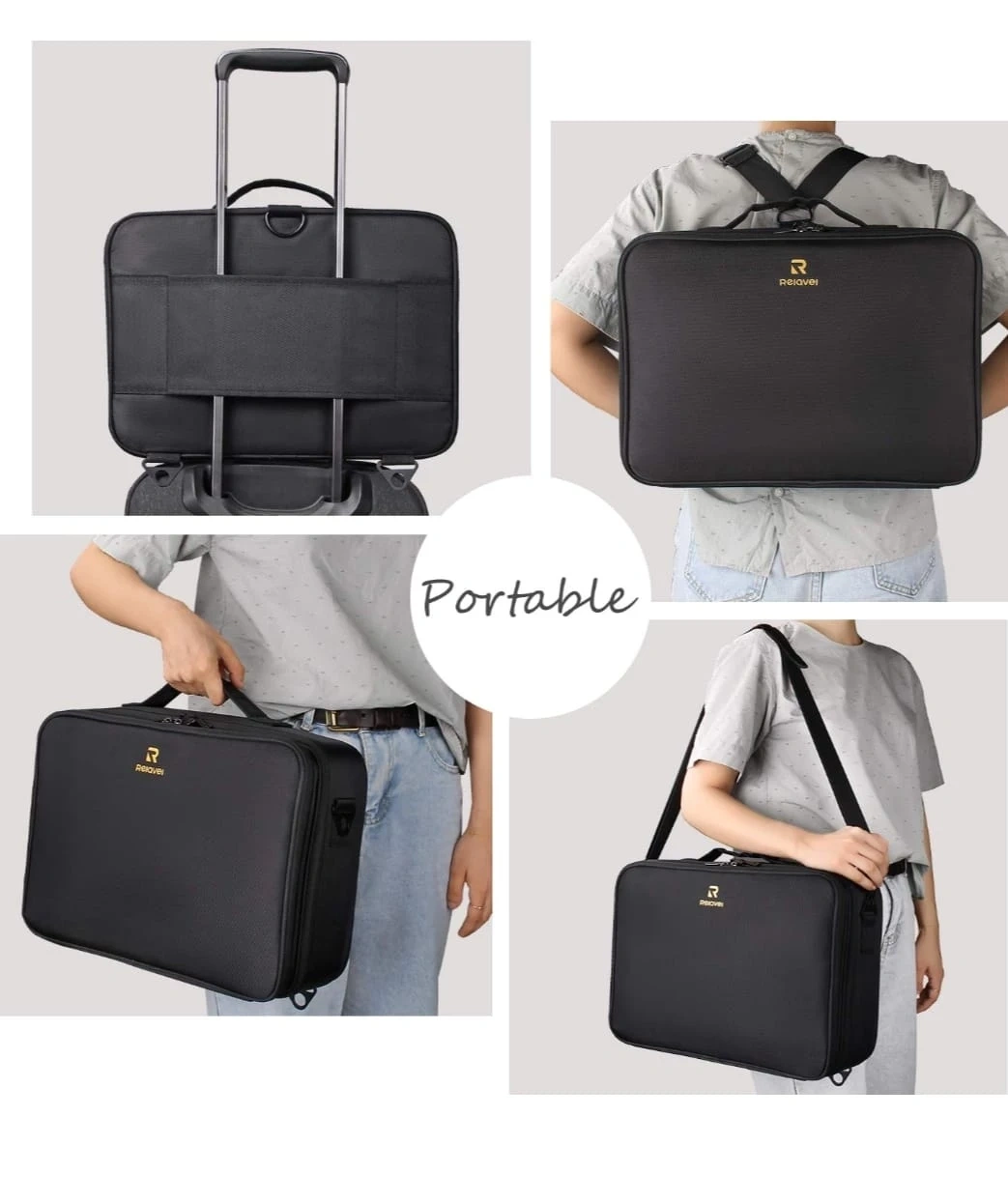 It's also designed to be portable, with options to carry it by hand, over the shoulder, or attach it to a rolling suitcase. Great for travel or keeping your makeup organized at home