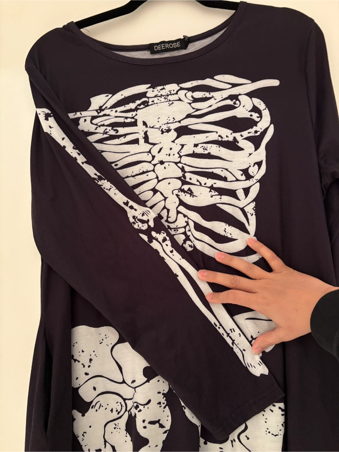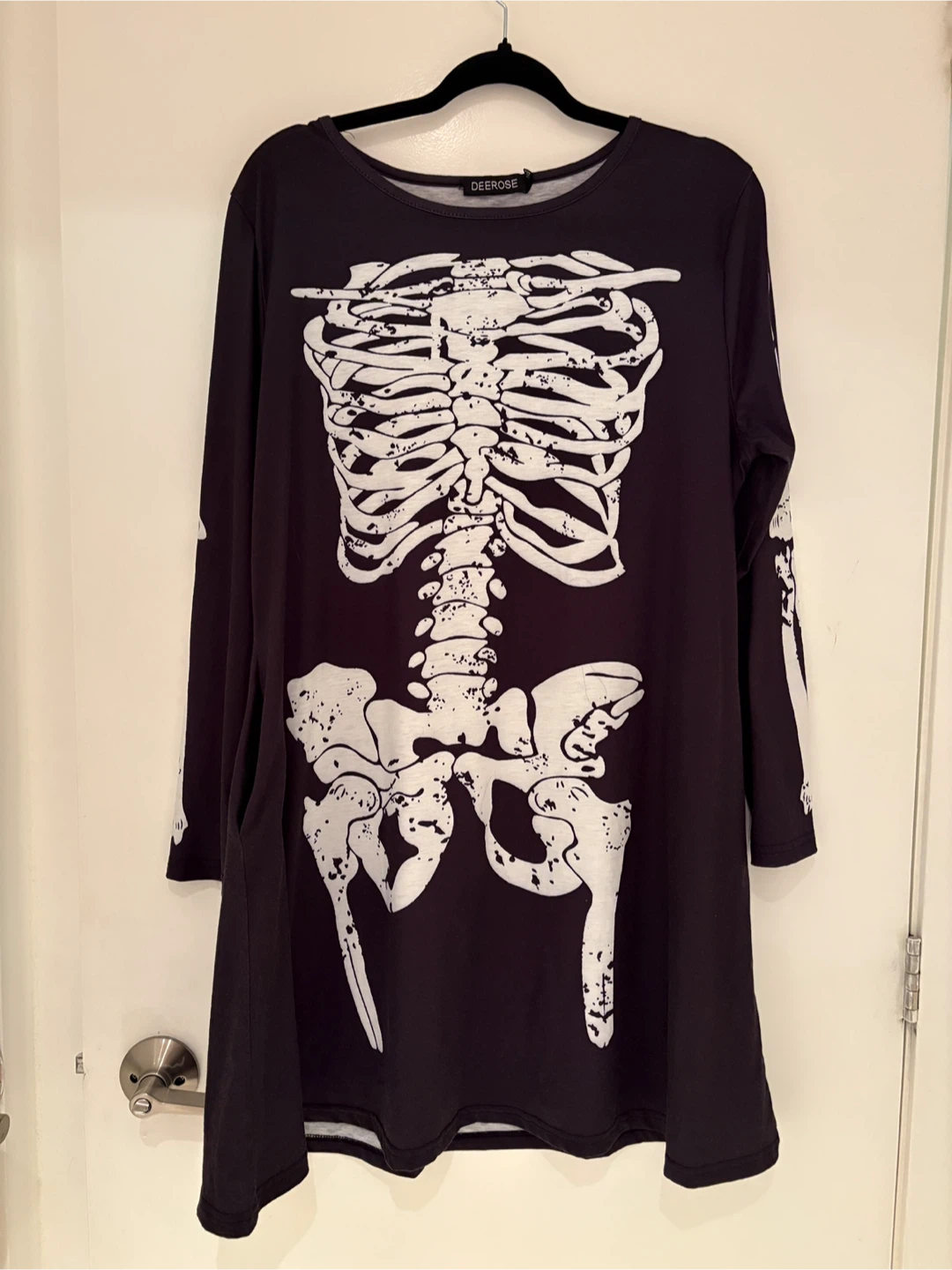 Selling a DEEROSE long sleeve dress with a skeleton print in size 2XL! Perfect for Halloween. Only worn twice.