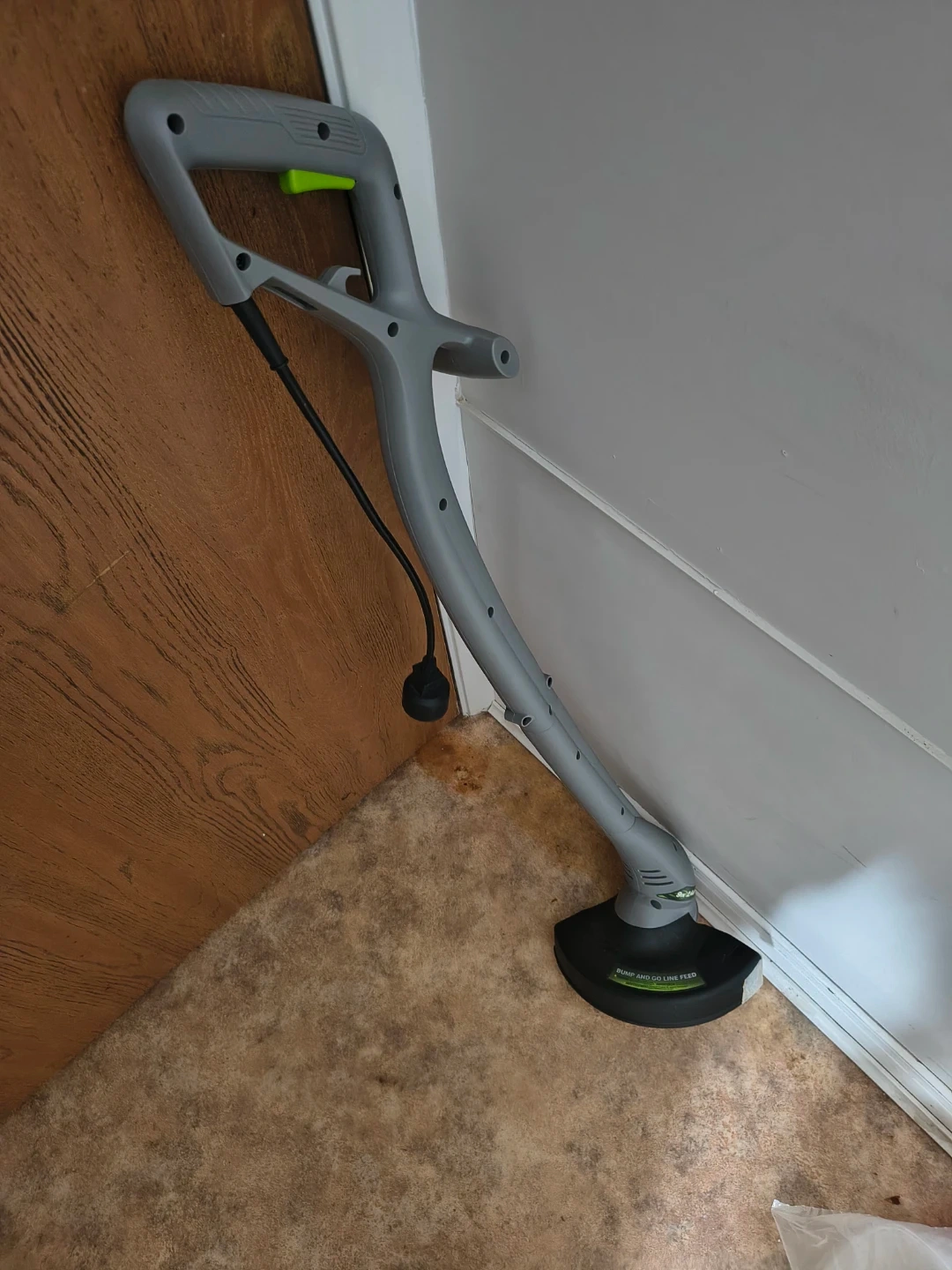 This is a GreenWorks electric string trimmer. It features a corded design for consistent power. The unit has a lightweight and ergonomic handle for comfortable use. It's suitable for tidying up edges and smaller lawn areas. Has one screw missing. That's the only issue. ( Easy fix)Pick up only p patch. Cash or e-transfer