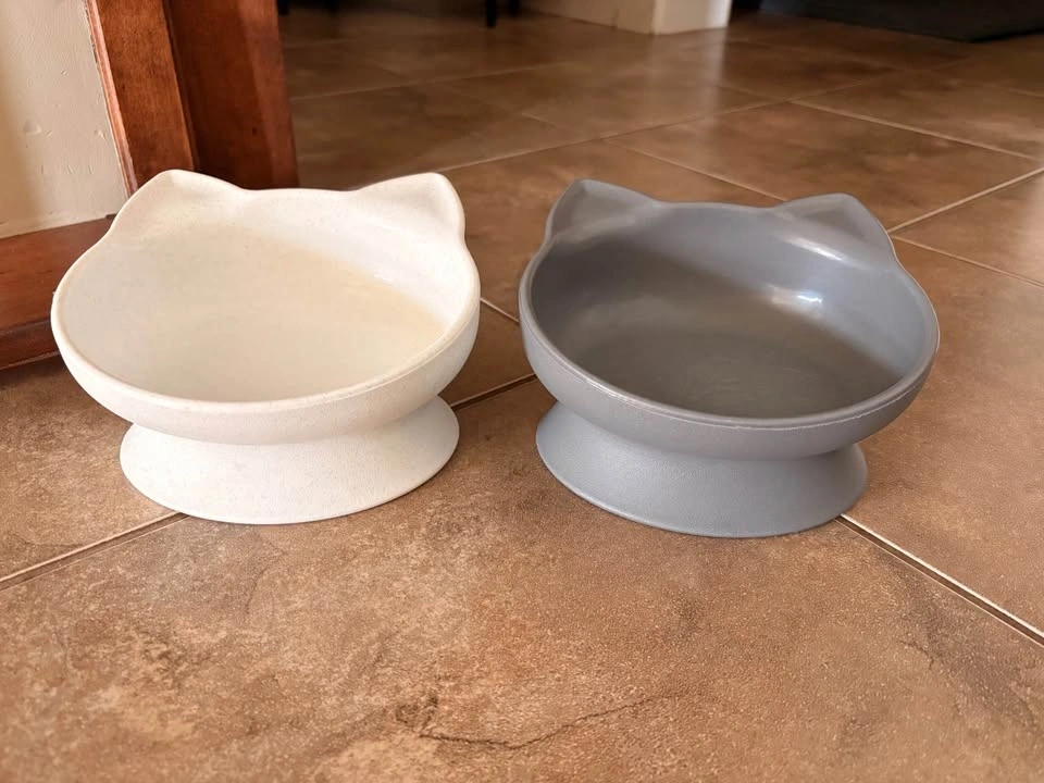 Kitty city 2 pack elevated pet bowls made from polypropylene plastic. These bowls are elevated and raised to promote proper digestion and are "whisker-friendly" as they are wide and oval shaped! Pickup Evanston NW.