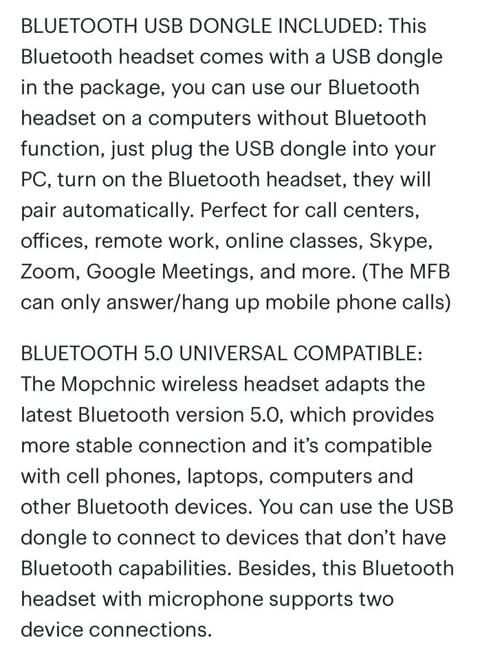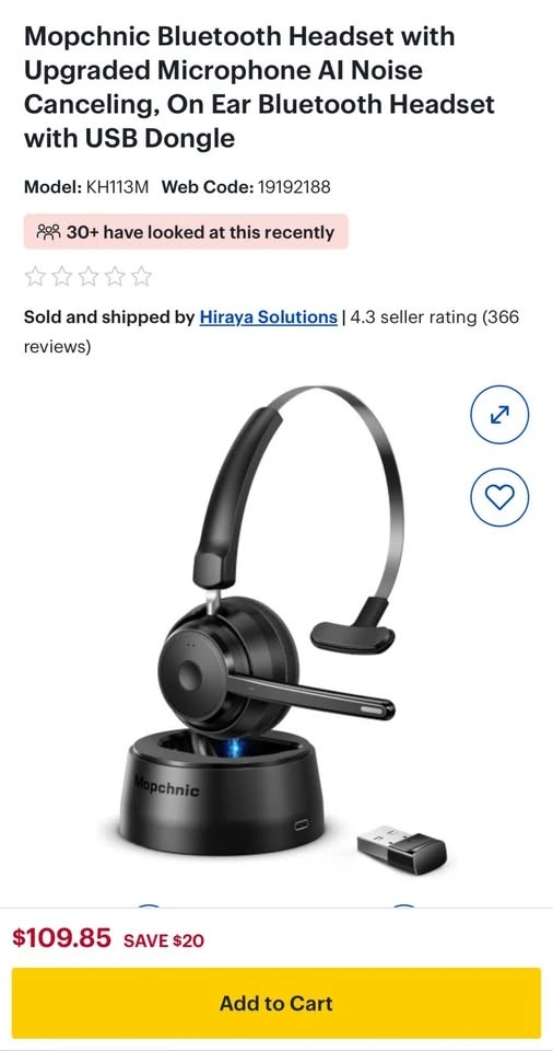 Mopchnic Blue tooth, wireless, noise cancelling, usb headset. New in box. See photos for all the special features. Can use with different devices. On sale now at Best Buy for $110+tax. Get yours for a fraction of the cost. Have a few to sell if needing more than one / will give better deal.