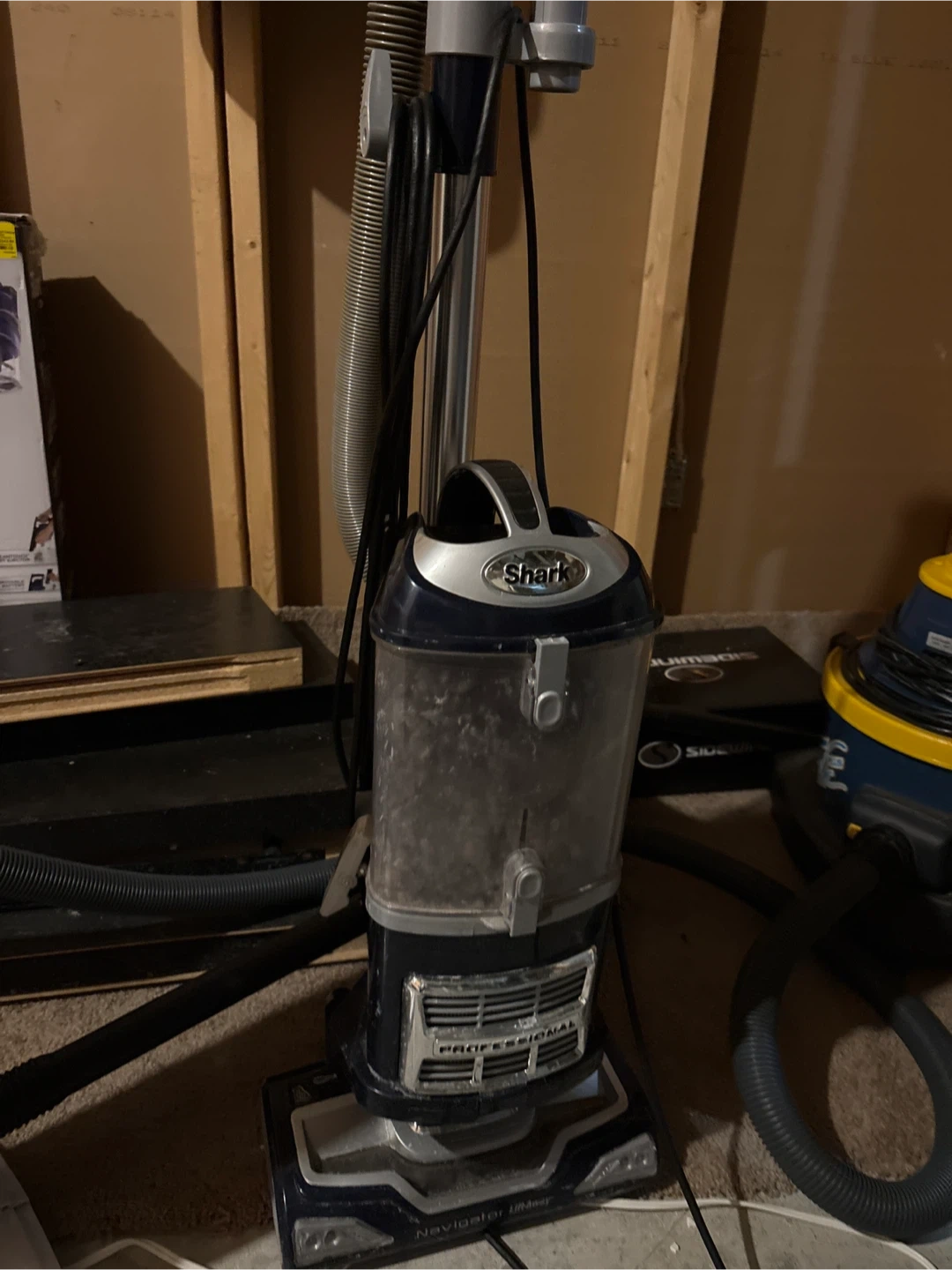 This is a Shark Navigator Lift-Away Professional vacuum. It features a lift-away canister for portable cleaning. The vacuum has a professional design and is suitable for home use. Used good