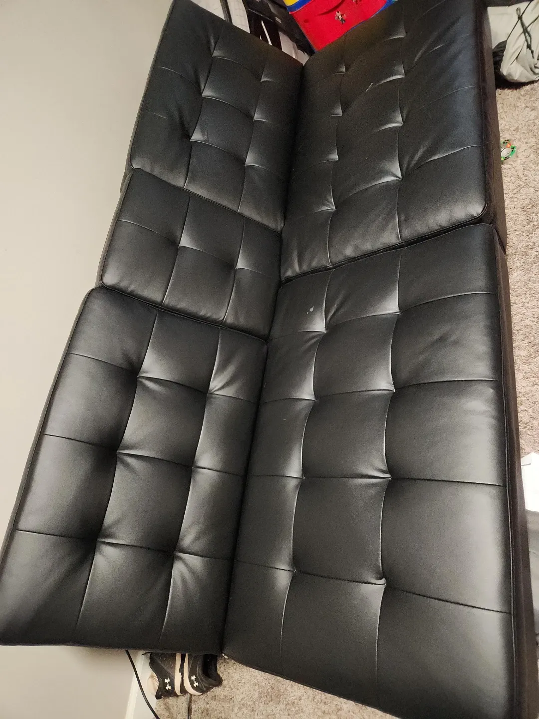 1 / 11 / 1Buy & SellBlack Faux Leather Tufted Futon CouchBlack Faux Leather Tufted Futon Couch$30This is a black faux leather tufted futon. It has a modern design with deep button tufting. It's made with durable faux leather and a sturdy frame.ConditionGoodWHERE TO MEETCheck LocationView MapSELLERverifiedJillBurr Ridge762 reviews3 chats·4 favorites·93 viewsSEND CHAT TO SELLERHi Jill! I’m interested in your listing.Hi Jill! I’m interested in your listing.Get the Karrot app to chatSign In to chat