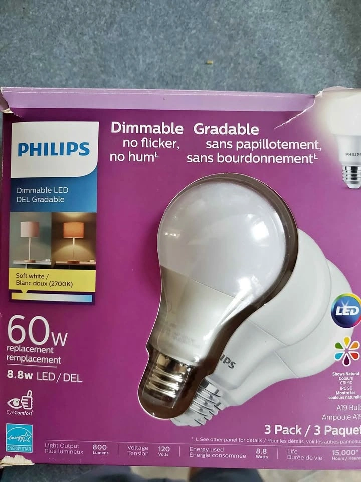 PHILIPS 462226 Led Bulb 60W A19 Soft White (2700K)-3 Pack