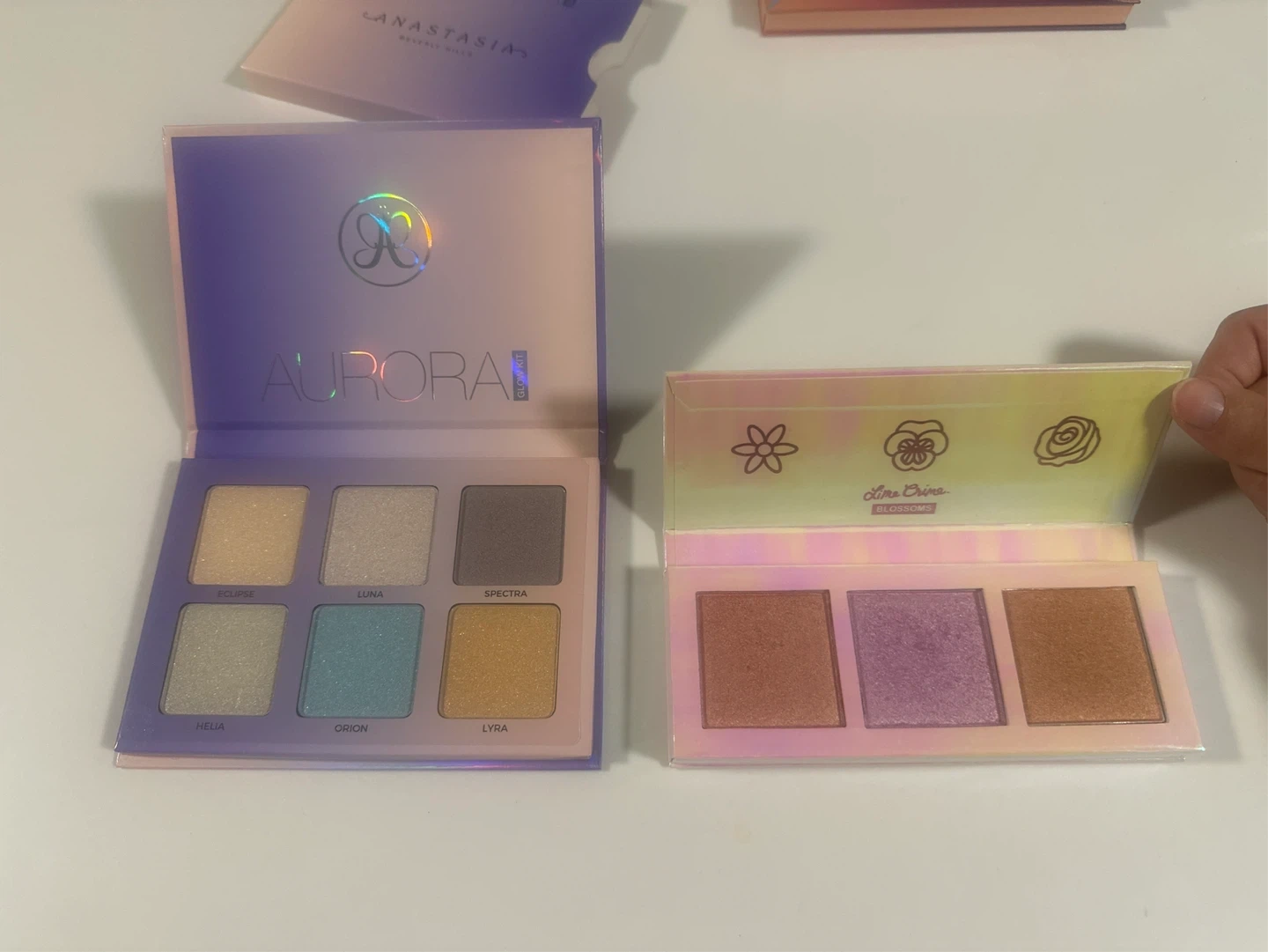 Selling two beautiful highlighter palettes! One is the Anastasia Beverly Hills Aurora palette, and the other is the Lime Crime Hi-Lite Blossoms palette. Both are new and ready to add some glow to your makeup collection