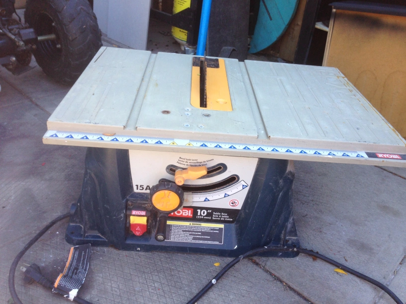 10Selling a Ryobi 10" Table Saw. It's a 15 Amp model. Great for small projects around the house. Please take a look at the pictures for condition. doesn't come with a fence guard