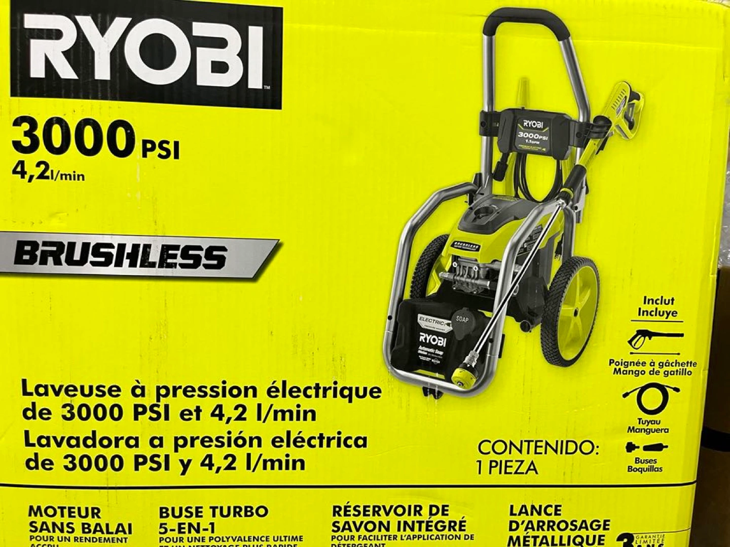 Selling a brand new Ryobi 3000 PSI brushless pressure washer! It delivers 3000 PSI at 4.2 l/min. It also features a brushless motor and an integrated soap reservoir.