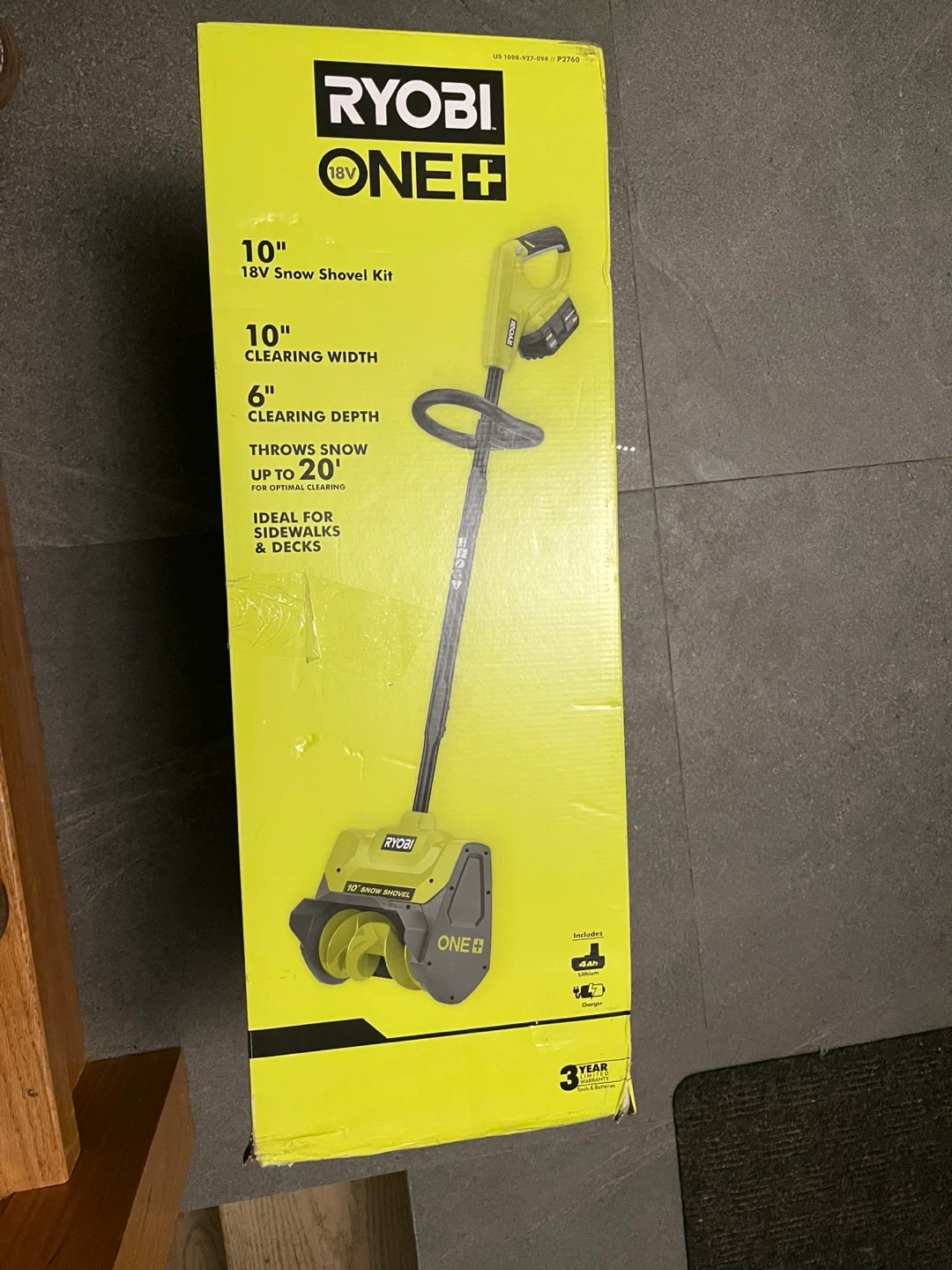 18Selling a brand new RYOBI ONE+ 18V 10" Snow Shovel Kit! It's ideal for clearing sidewalks and decks. Key features: - 10" Snow Shovel Kit - 10" Clearing Width - 6" Clearing Depth - Throws snow up to 20' It also includes a 4Ah battery and charger, and comes with its original box