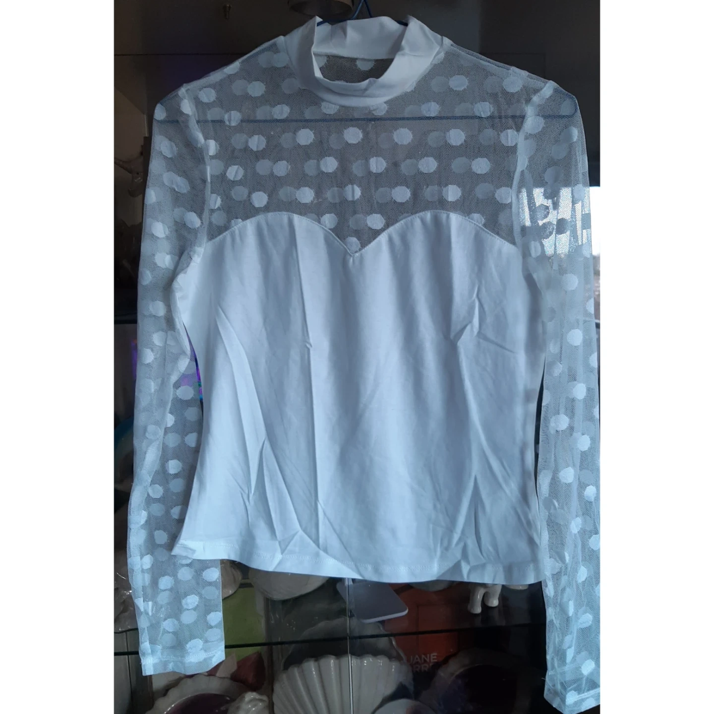Shein white polka dot top