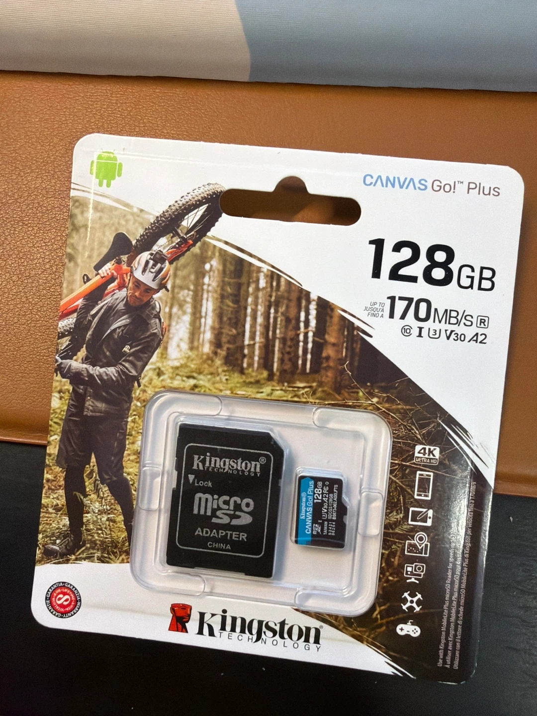This all-new sealed Kingston 128GB microSDXC Canvas Go Plus memory card offers up to 170MB/s transfer speed. It's ideal for 4K action cameras and drones, supporting UHS Speed Class 3 and Video Speed Class 30 ratings. The card's durable design makes it water-proof, temperature-proof, shock-proof, and X-ray proof. Amazon price: 66+tax
