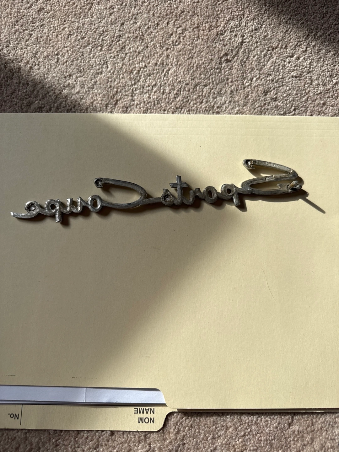 Metal emblem original 1963 Ford Fairlane coupe Script lettering. Shows some wear. Great for restoration projects or collectors.