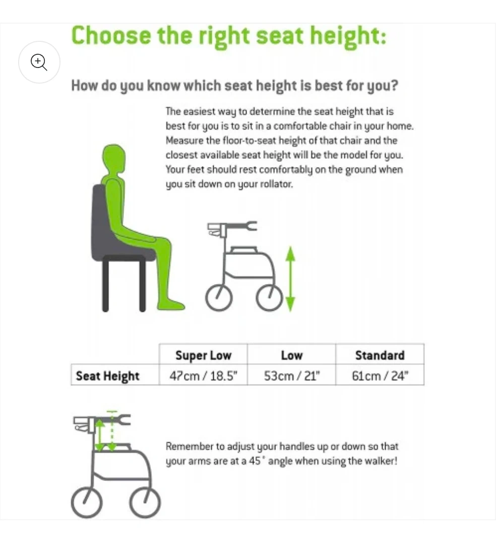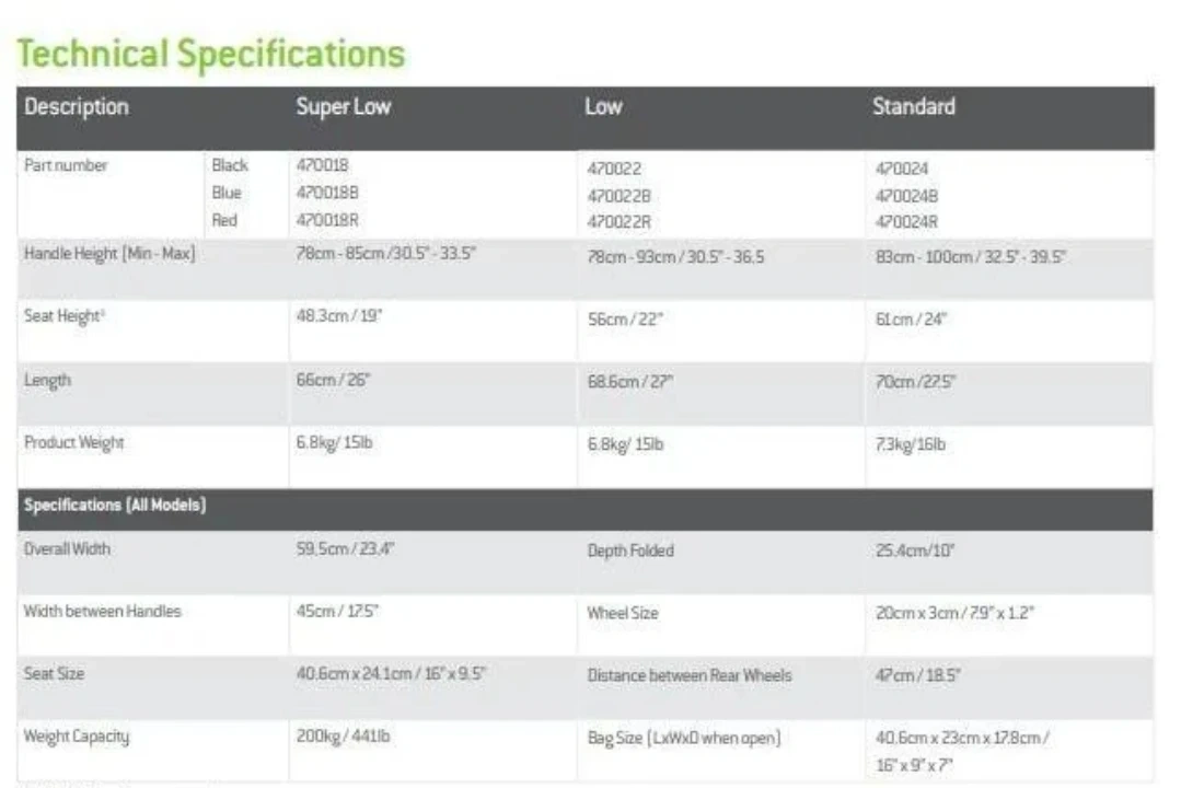 Adjustability: Features adjustable handle heights (typically 30.5" to 39.5") and is available in three seat heights: 19"