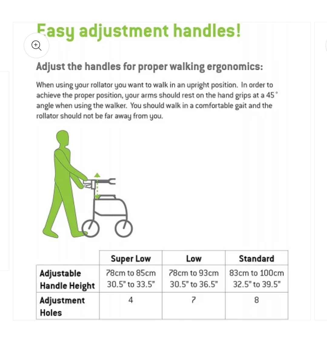 Adjustability: Features adjustable handle heights (typically 30.5" to 39.5") and is available in three seat heights: 19"