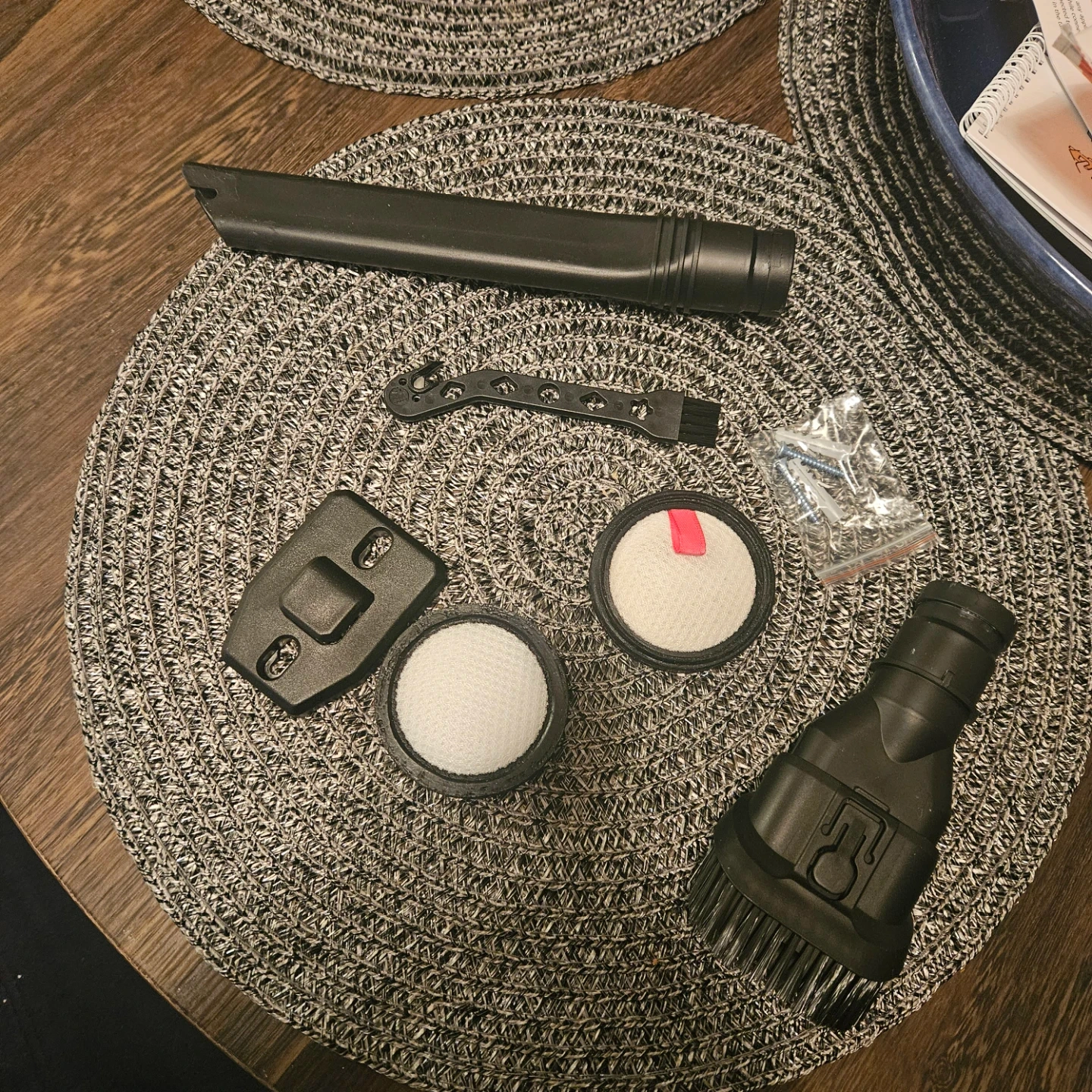 This DEVOAC cordless stick vacuum is blue and grey. It comes with multiple attachments for versatile cleaning. This vacuum is great for quick cleanups around the house! Comes with charger and from smoke and pet free home.