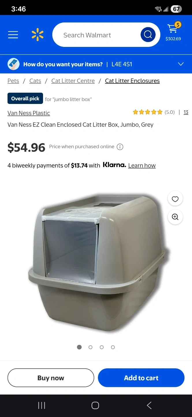 This is a Plastic jumbo enclosed cat litter box. It's grey in colour and features a hooded design with a swinging door. The enclosed nature helps contain litter scatter and odours.