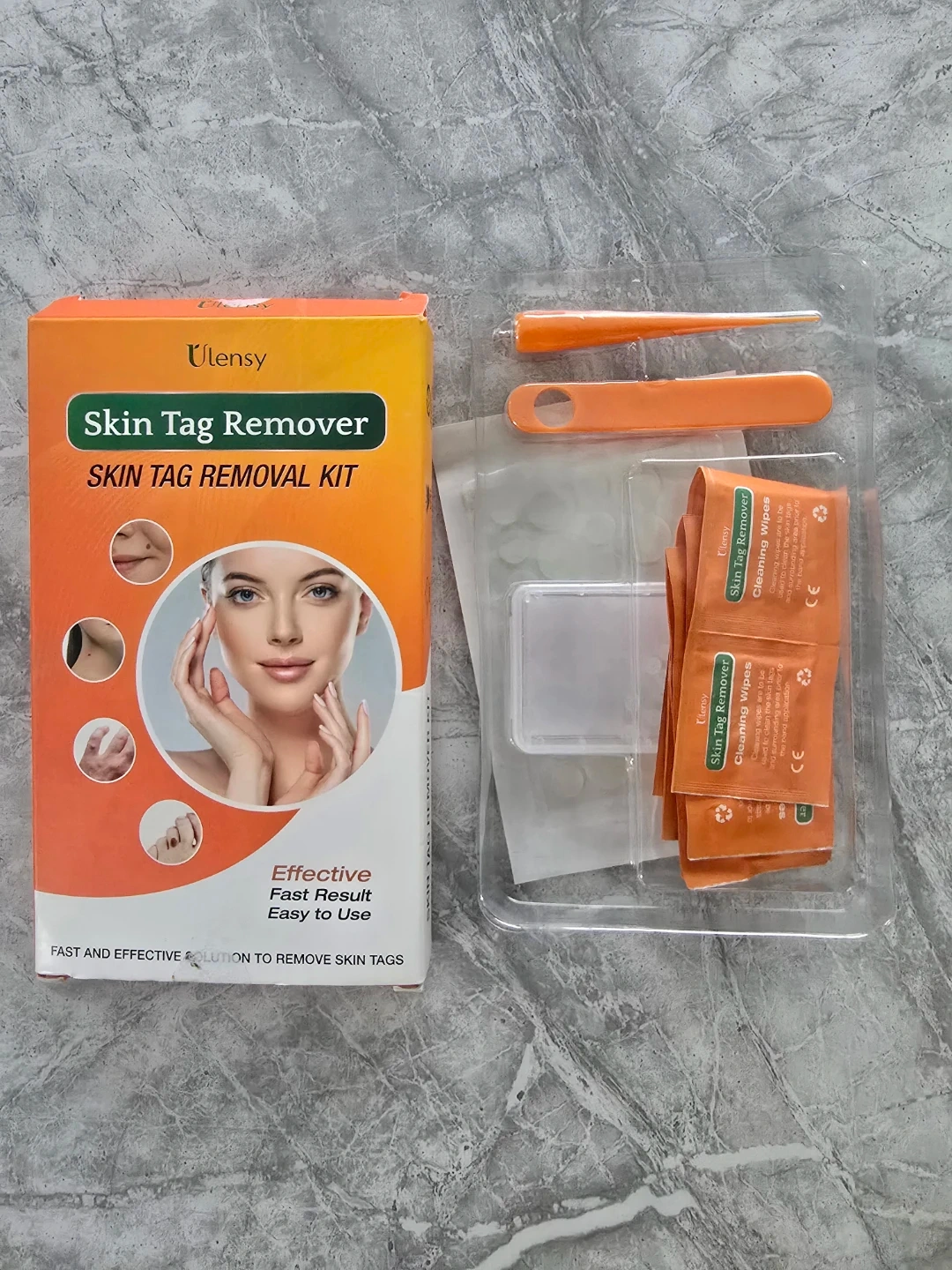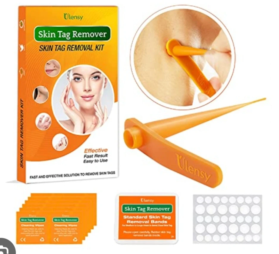 This Utensy Skin Tag Remover Kit comes with everything you need to effectively remove skin tags. It includes clearing wipes and removal bands. The kit is designed for fast and easy use.