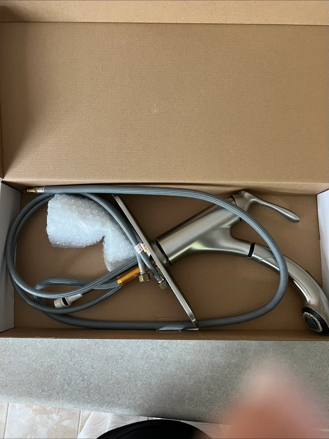 A kitchen faucet. It features a motion sensor and pull down head. Installation is trouble-free. Imagine the ease of use with this elegant faucet. Like new working conditions