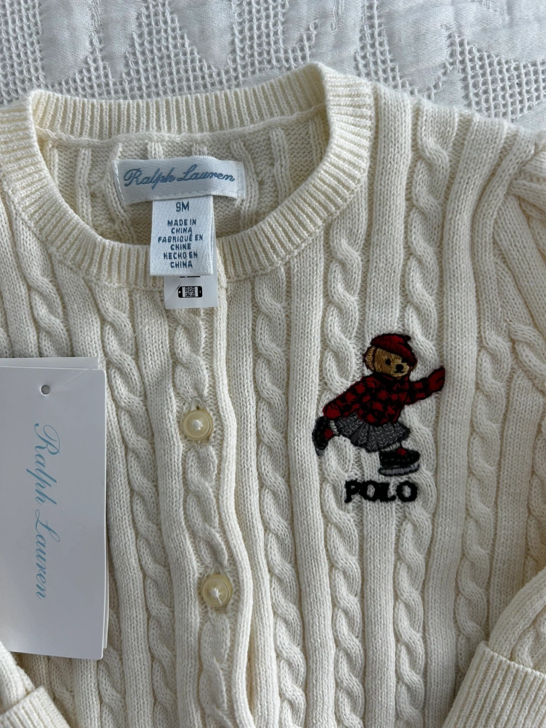Ralph Lauren Baby Girls Cream Polo Bear Cable Knit Cardigan 9M