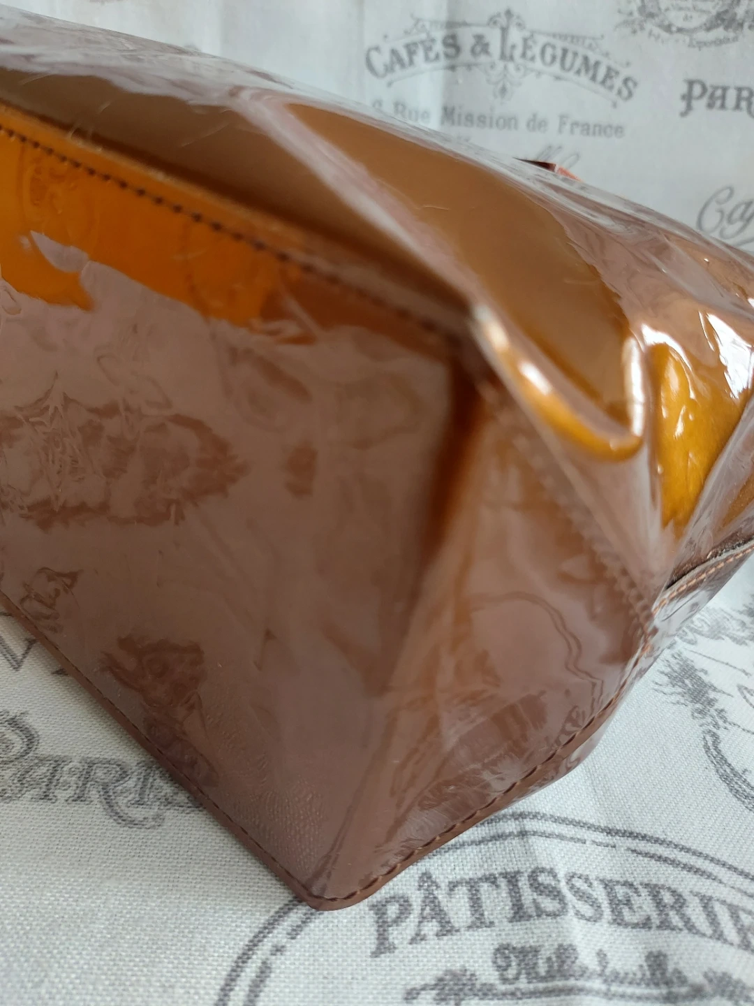 Vernis Leather - light rubbings in one bottom corner, some stains at the bottom, one tiny nick and scratch