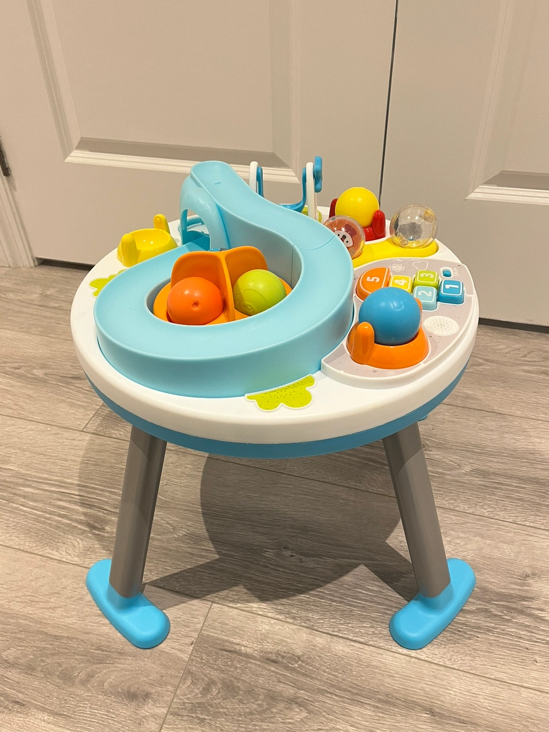 Used for less than a year. Legs come off so you can start using this toy in tummy time to when your baby is kneeling and then standing! Comes from a smoke free / pet free home. Pick up only Lakeshore/41St Etobicoke. Cash only.