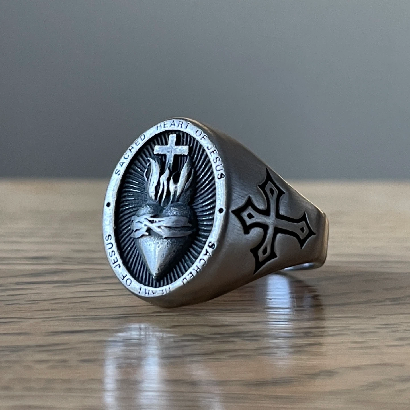Heart of Jesus brushed titanium ring (size 13)
