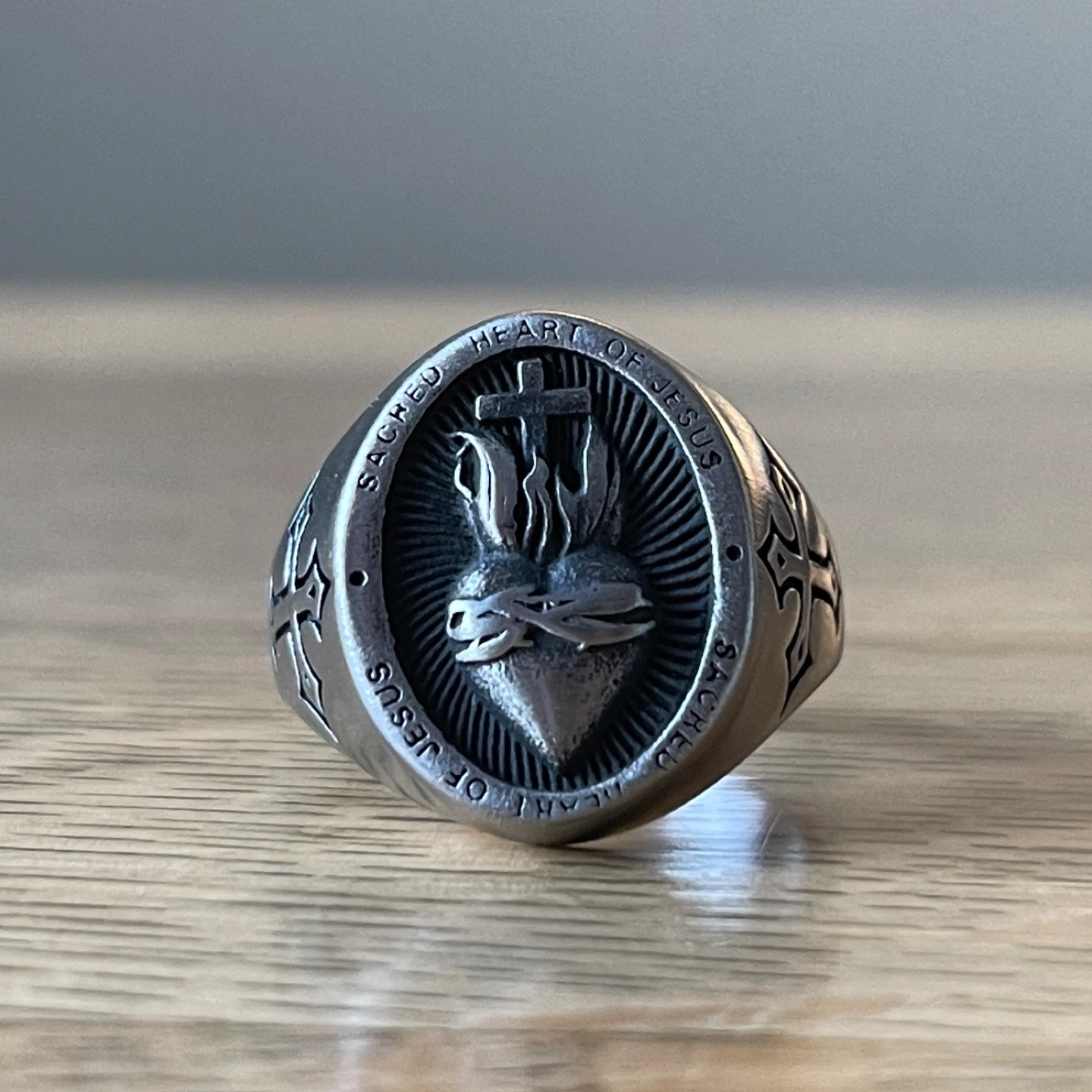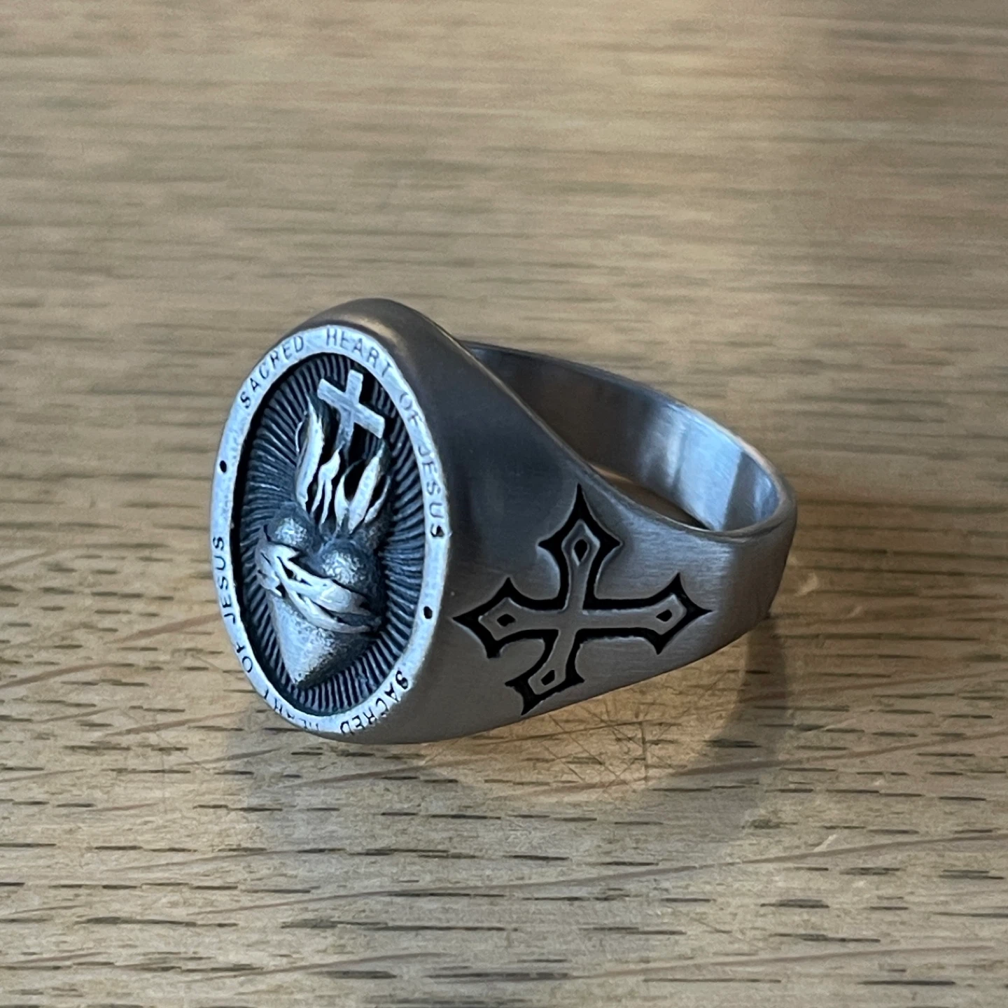 Heart of Jesus brushed titanium ring (size 13)