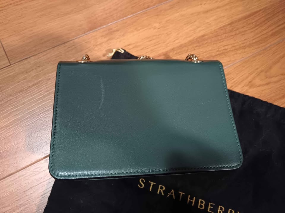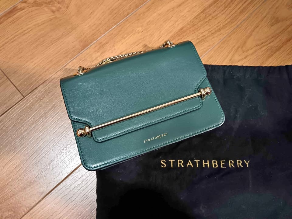 Authentic Strathberry Bottle Green East to West Mini Crossbody Bag. Used in great condition, minor scratches that aren't so obvious unless looking from specific angles.