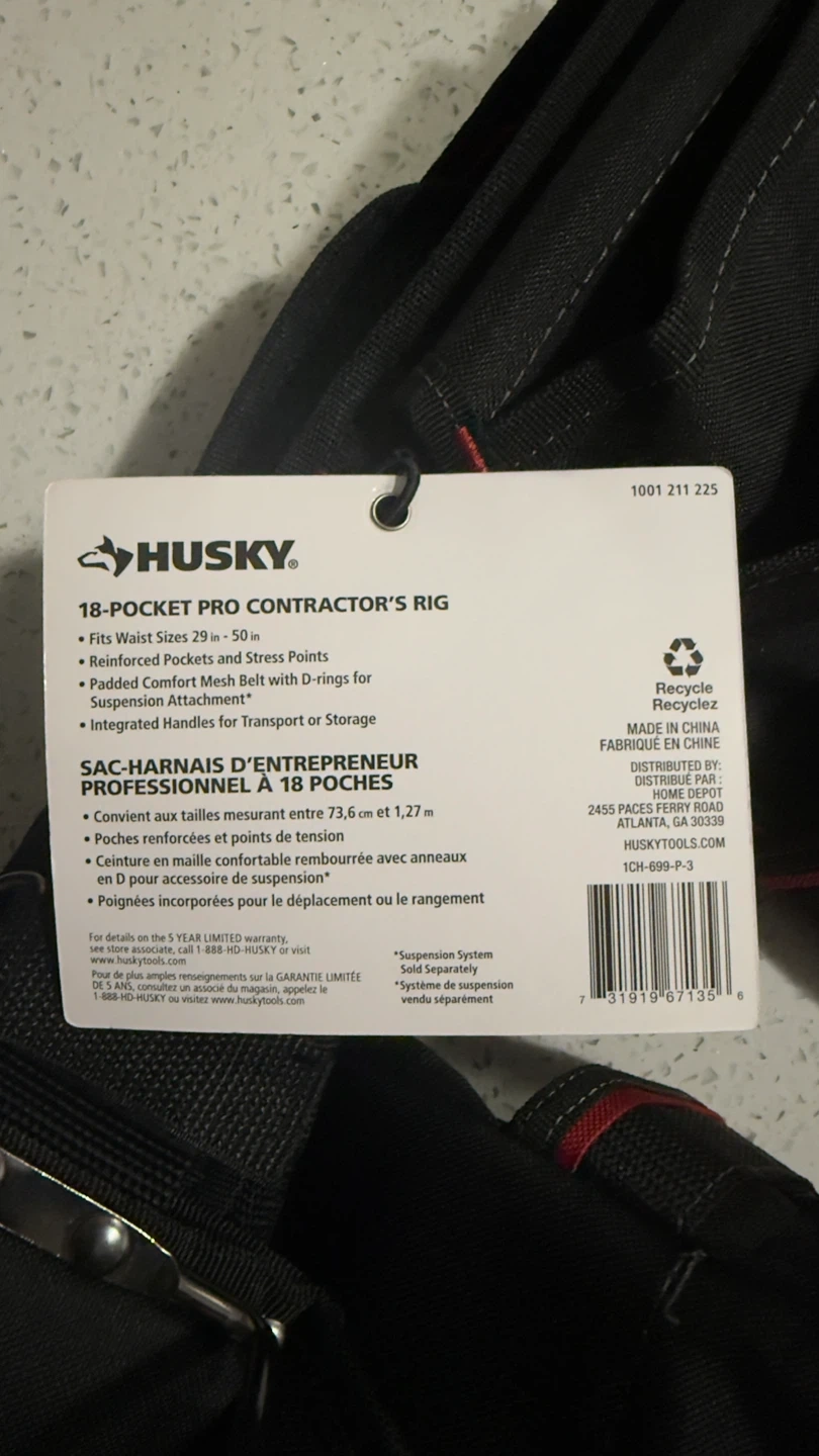 Selling a Husky 18-Pocket Contractor’s Rig (Model # 1CH-699-P-3) - brand new, never used!