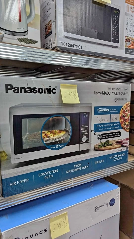 Brand new Panasonic 4-in-1 Multi-Oven combining: Air Fryer, Convection Oven, 1100W Microwave, Broiler with Combination Cooking. 1.3 cu ft (37L) capacity β fits a 12β pizza. Inverter technology for even cooking and better texture. Modern stainless steel finish with digital controls. One appliance that replaces four and saves serious counter space. Limited quantity available. Half price. Full performance.