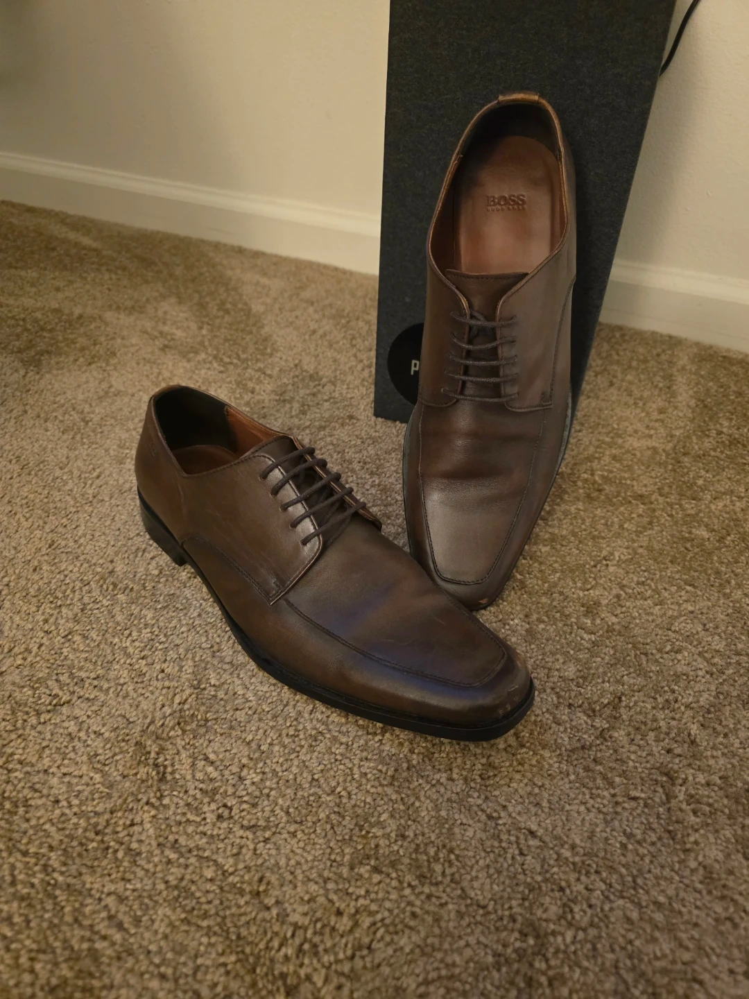 BOSS Hugo Boss Men's Brown Leather Dress Shoes Size 10