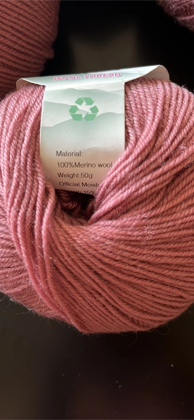 Selling 12 skeins of beautiful merino wool thread! Each skein weighs 50g and is made of 100% merino wool. The colour is a lovely muted rose. Perfect for your next knitting or crochet project!