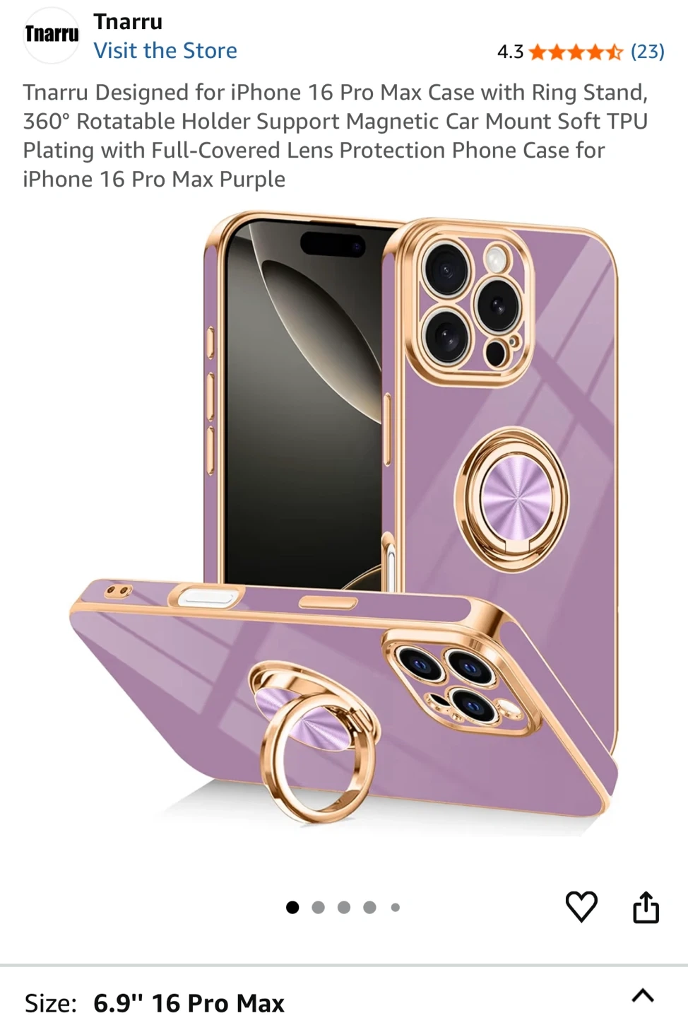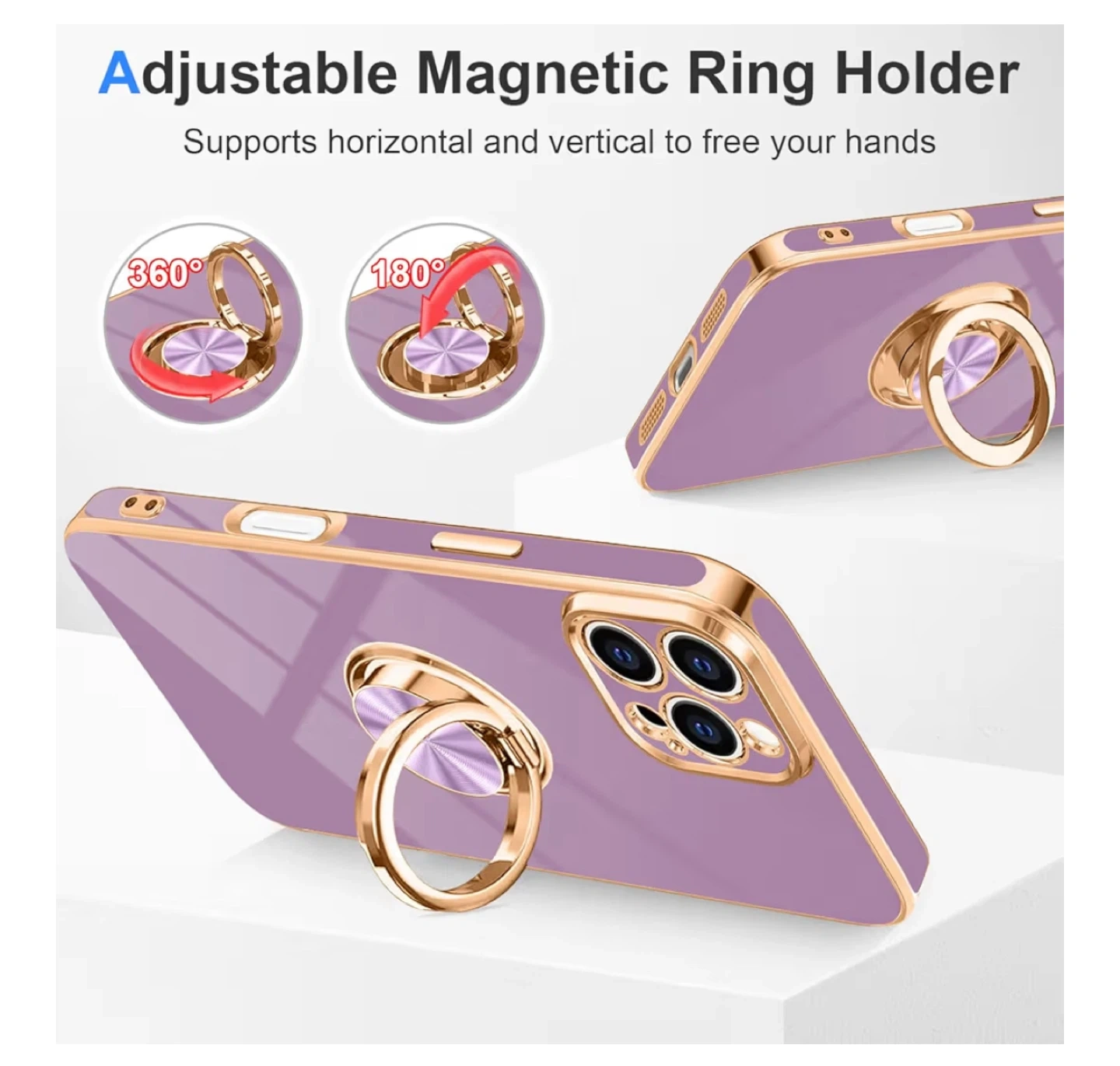 This is a Tnarru case for the iPhone 16 Pro Max in a lovely lavender colour! It features a ring stand that rotates 360 degrees, making it easy to use your phone hands-free. The case is designed with full-covered lens protection and made from soft TPU plating. Works with magnetic car mounts for easy navigation
