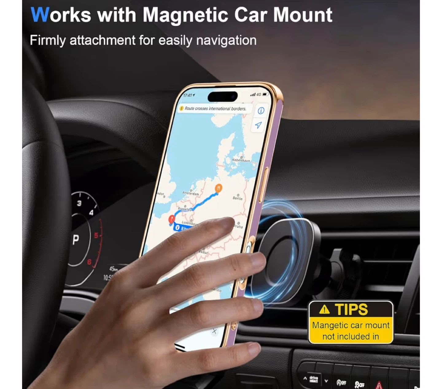 This is a Tnarru case for the iPhone 16 Pro Max in a lovely lavender colour! It features a ring stand that rotates 360 degrees, making it easy to use your phone hands-free. The case is designed with full-covered lens protection and made from soft TPU plating. Works with magnetic car mounts for easy navigation